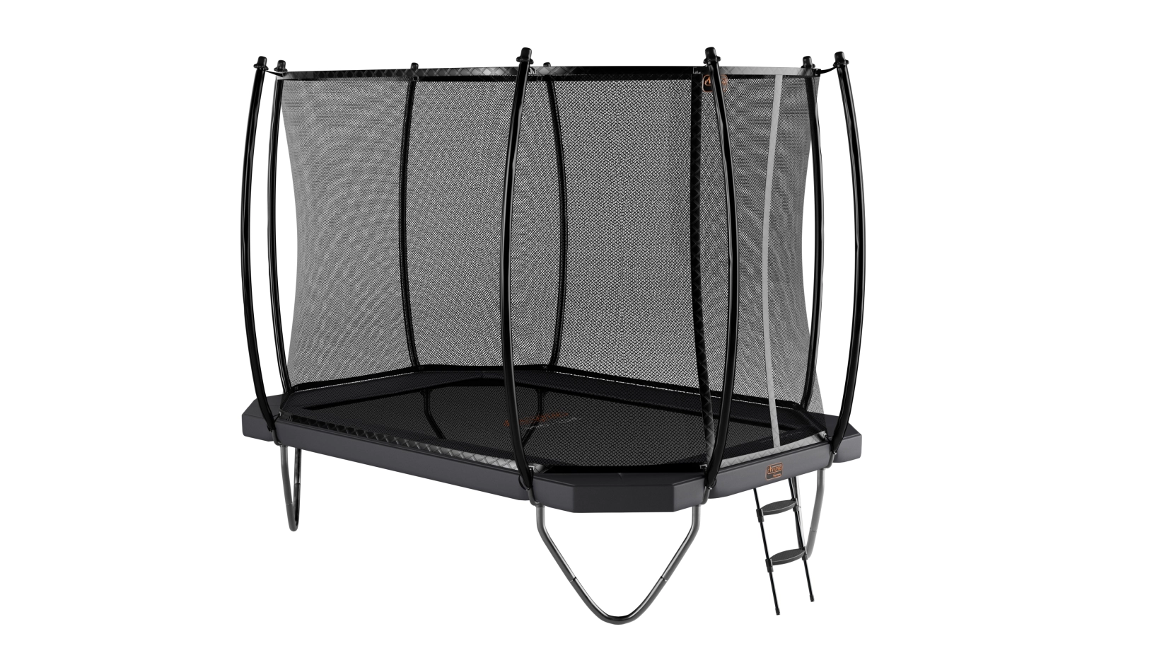 Een rechthoekige Avyna Pro-Line trampoline met een afmeting van 305x225cm. Deze trampoline wordt standaard als set geleverd met een veiligheidsnet en een trampolineladder. Een ijzersterke trampoline met een lange levensduur!
