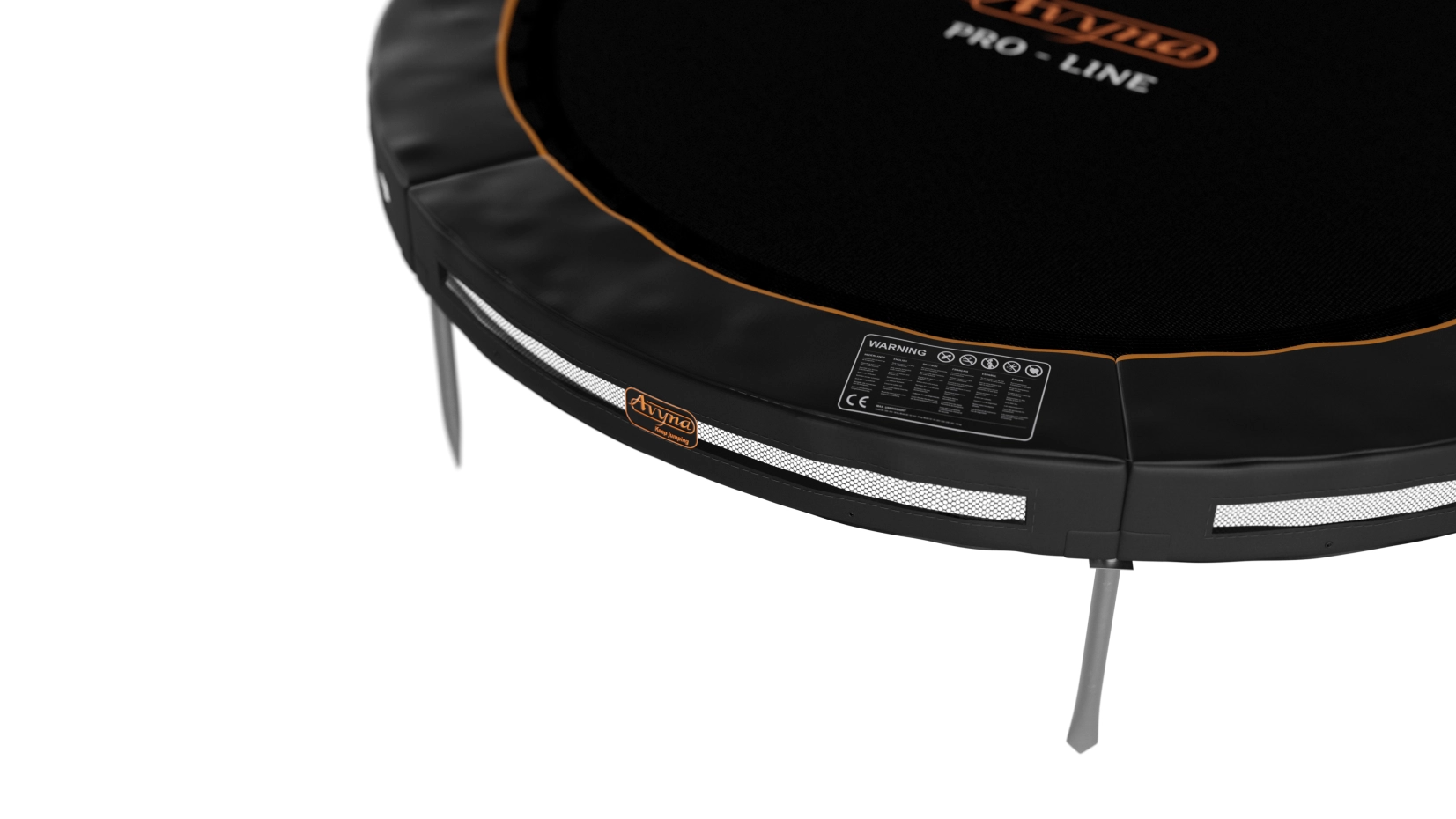 De trampoline heeft stevige lange veren welke bedekt worden door een zwarte beschermingsrand. Terwijl de langere veren zorgen voor uitstekende vering, verzorgt het randkussen de veiligheid van het springen. De Pro-Line is dan ook erg goed afgewerkt en is een echt solide, betrouwbare trampoline. De trampoline is niet alleen ijzersterk, maar heeft ook een lange levensduur.