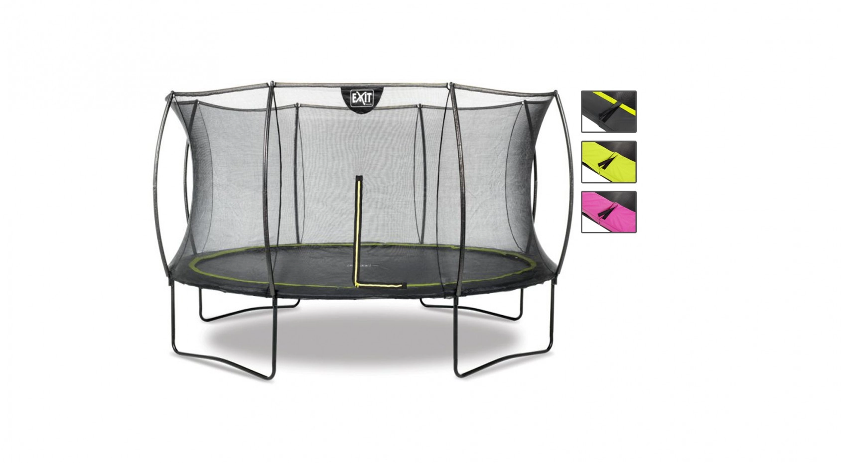 De trampoline EXIT Silhouette is een moderne en fraai vormgegeven trampoline! De trampoline EXIT Silhouette is leverbaar in 3 verschillende kleurstellingen. Een stoere kwaliteits trampoline mét veiligheidsnet voor een aantrekkelijke prijs!