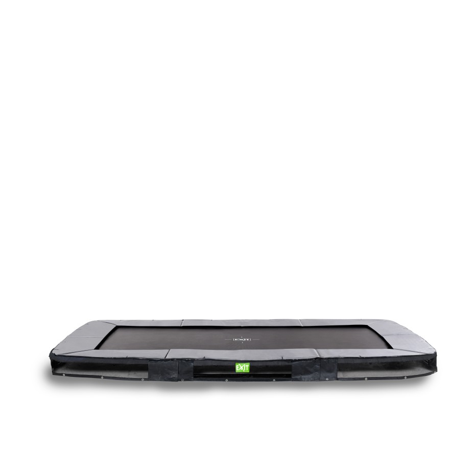 De EXIT Elegant Premium inground sports trampoline voor 14-plussers is een rechthoekige trampoline met een zwarte rand en zwarte rok. In een handomdraai graaf je een kuil in de grond waar de trampoline overheen wordt gezet voor een mooi en veilig resultaat. De Elegant sports ingraaftrampoline wordt zonder veiligheidsnet geleverd en is daardoor eenvoudig te betreden. De Premium versie heeft langere veren en een dikkere beschermrand.