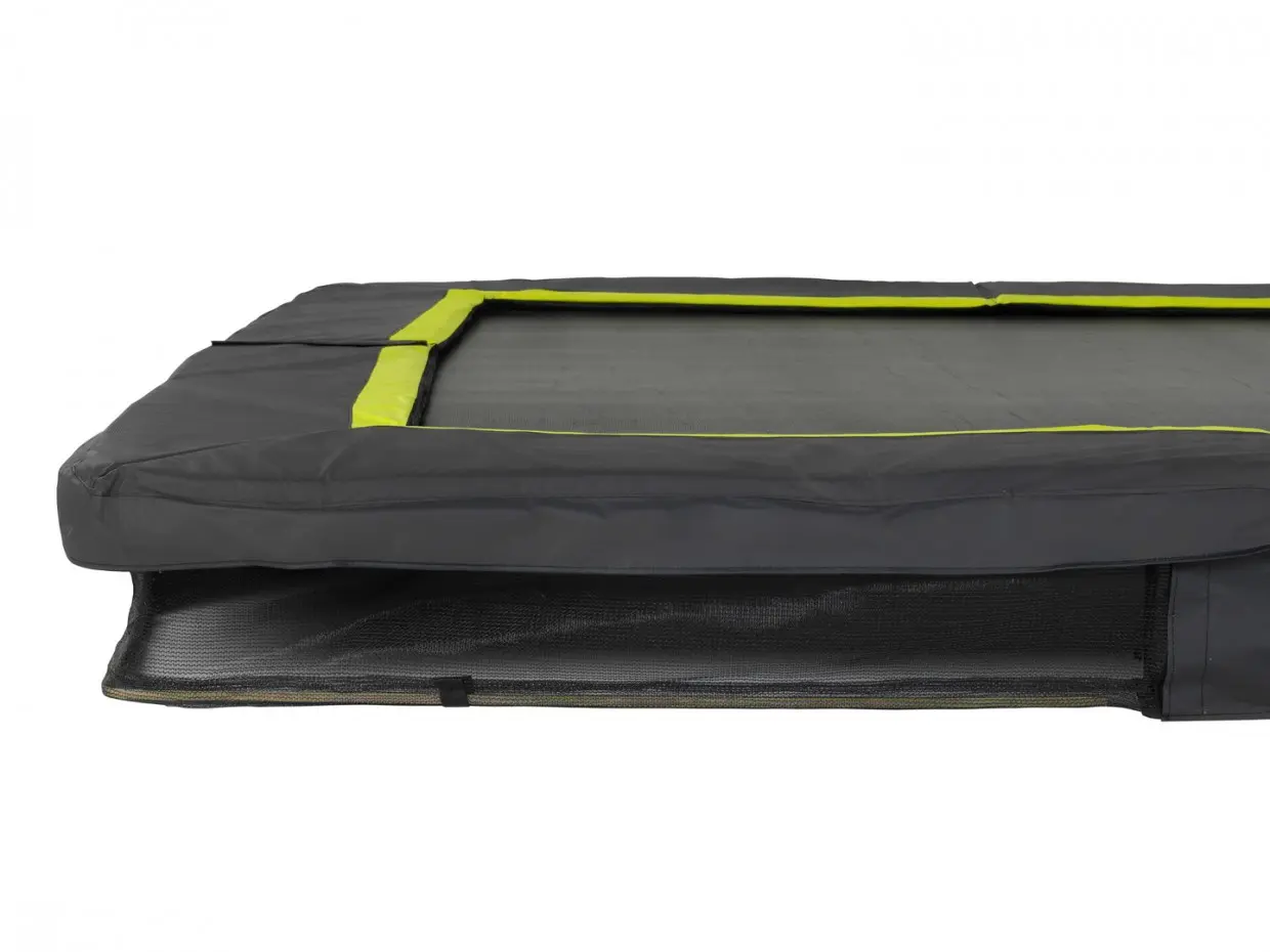 De EXIT Silhouette inground sports trampoline voor 14-plussers is een rechthoekige trampoline met een matzwarte beschermrand. In een handomdraai graaf je een kuil in de grond waar de trampoline overheen wordt gezet voor een mooi en veilig resultaat. De Silhouette sports ingraaftrampoline wordt zonder veiligheidsnet geleverd en is daardoor eenvoudig te betreden.