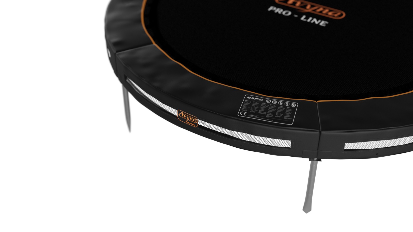 De trampoline heeft stevige lange veren welke bedekt worden door een zwarte beschermingsrand. Terwijl de langere veren zorgen voor uitstekende vering, verzorgt het randkussen de veiligheid van het springen. De Pro-Line is dan ook erg goed afgewerkt en is een echt solide, betrouwbare trampoline. De trampoline is niet alleen ijzersterk, maar heeft ook een lange levensduur.