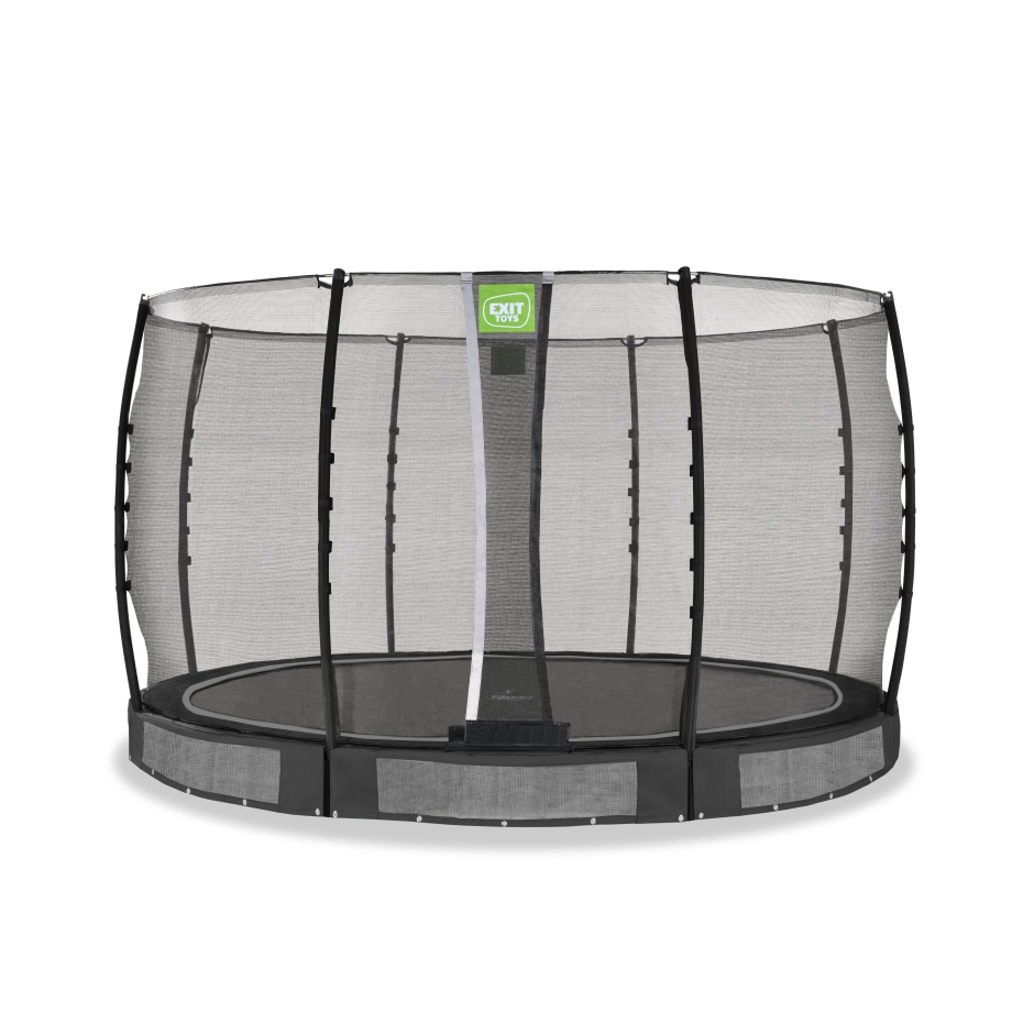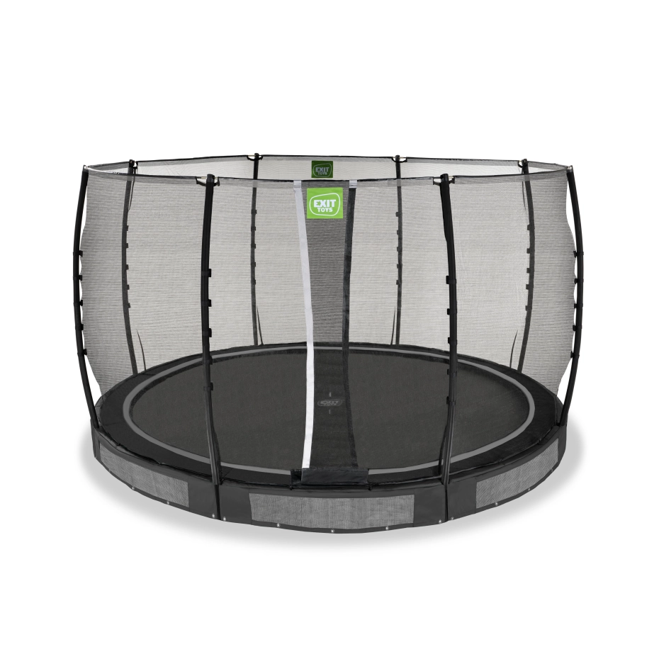 De EXIT Allure Classic inground trampoline is een ingraaftrampoline met een beschermrand en een veiligheidsnet. Dankzij het EXIT Foot Protection System (FPS), een net tussen het springdoek en de trampoline beschermrand, komen trampolinespringers nooit met hun voeten tussen de springveren. De Allure inground trampoline wordt gedeeltelijk ingegraven en is daardoor voor iedereen eenvoudig te betreden. Bovendien wordt de trampoline met een veiligheidsnet geleverd. Het veiligheidsnet heeft een overlappende ingang die automatisch sluit, zodat het nooit ongemerkt open blijft staan. Ook zijn de palen van het veiligheidsnet bedekt met schuim. Het trampolineframe is gegalvaniseerd en gepoedercoat en heeft daardoor een lange levensduur. Daarnaast is de beschermrand van deze trampoline voorzien van een beschermende, waterafstotende pvc-toplaag. Door middel van gebogen palen en een glasvezelring wordt het veiligheidsnet mooi strak in vorm gehouden. En last but not least: de Allure Classic ingraaftrampoline heeft dubbel conische veren die zorgen voor een soepele sprong en een zachte landing.