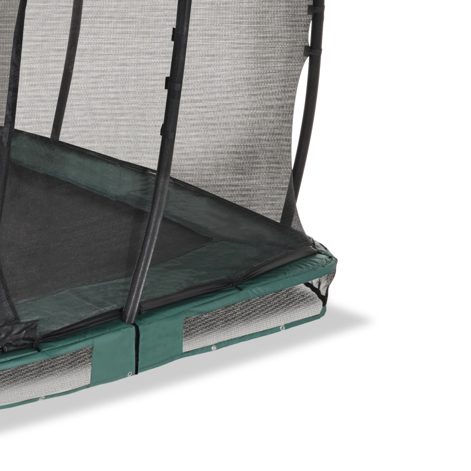 De EXIT Allure Premium inground trampoline is een ingraaftrampoline met een beschermrand en een Premium veiligheidsnet. Dankzij het EXIT Foot Protection System (FPS), een net tussen het springdoek en de trampoline beschermrand, komen trampolinespringers nooit met hun voeten tussen de springveren. De Allure inground trampoline wordt gedeeltelijk ingegraven en is daardoor voor iedereen eenvoudig te betreden. Bovendien wordt de trampoline met een Premium veiligheidsnet geleverd. Het veiligheidsnet heeft een overlappende ingang die automatisch sluit, zodat het nooit ongemerkt open blijft staan. Ook zijn de palen van het Premium veiligheidsnet bedekt met hoogwaardig XPE schuim. De extra lange dubbel conische veren van maar liefst 21,6 cm zorgen voor de perfecte sprong en een zachte landing. Op de EXIT Allure Premium ingraaftrampoline stijg je pas écht tot grote hoogte! Door het gegalvaniseerde en gepoedercoate frame heeft de trampoline een lange levensduur. Glasvezelringen en gebogen palen houden het veiligheidsnet super strak in vorm en de extra dikke beschermrand met waterafstotende pvc-toplaag beschermt jou én de trampoline optimaal.