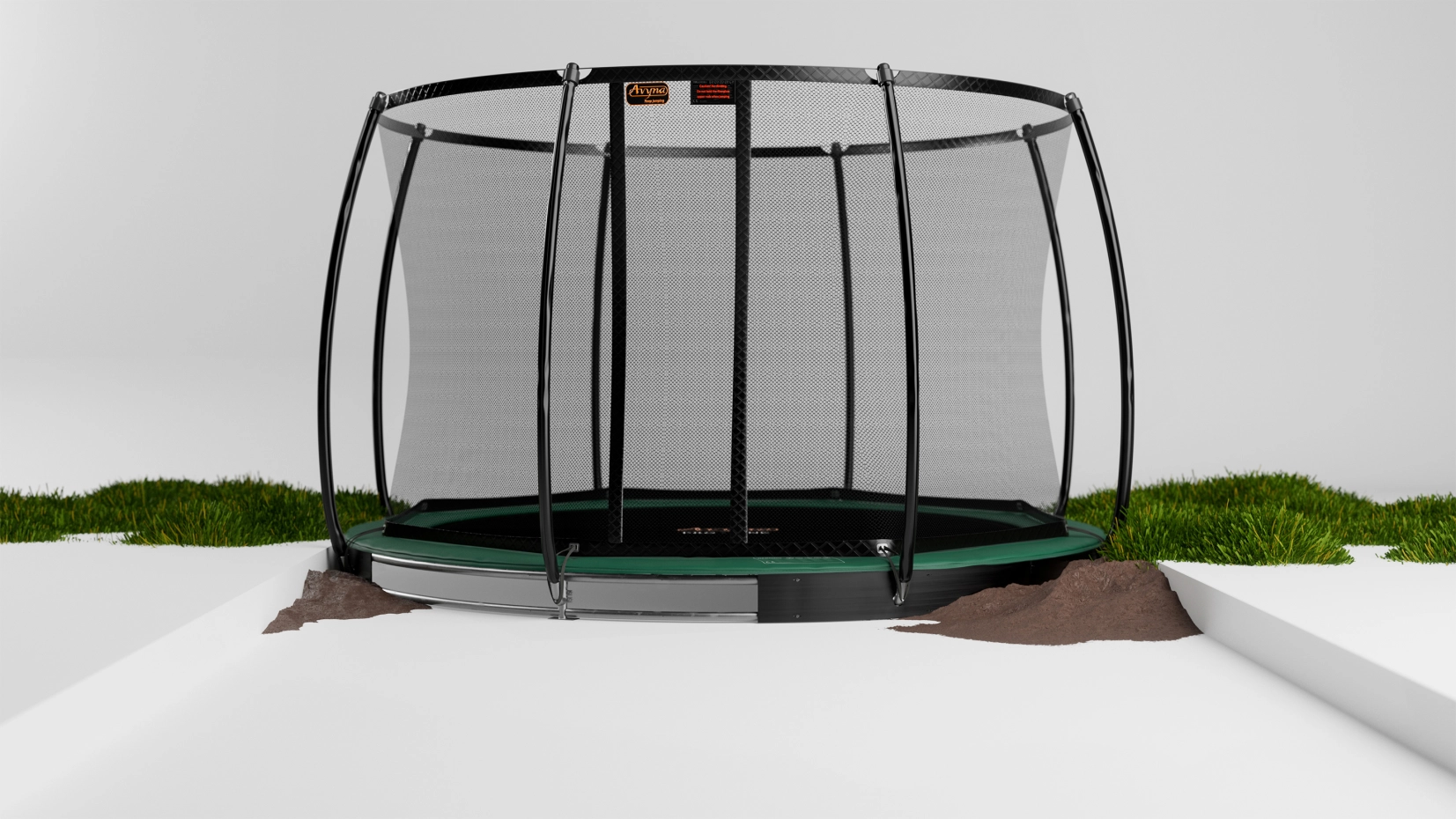 De Avyna FlatLevel trampoline komt niet boven het maaiveld uit en is daardoor mooi geïntegreerd in je tuin. Hierdoor is het voor voor alle leeftijden makkelijk op en af stappen van de trampoline.