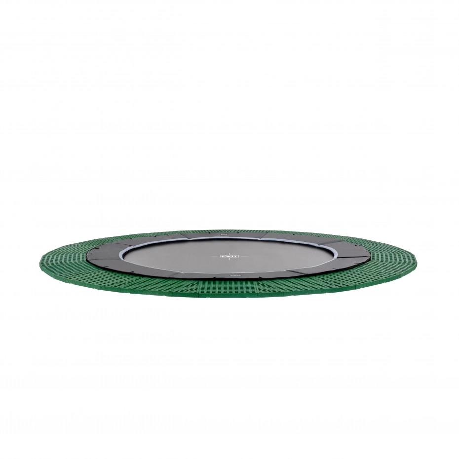 De trampoline EXIT Dynamic groundlevel is een ronde, matzwarte ingraaftrampoline van absolute topkwaliteit. Deze stevige trampoline wordt standaard geleverd met unieke Freezone veiligheidstegels voor een optimale bescherming rondom. Kinderen met veel springervaring tillen hun vaardigheden moeiteloos naar een hoger level, want deze trampoline heeft dubbel conische veren van maar liefst 25 cm lang. Toch blijft de trampoline bij de hoogste sprongen stevig op zijn plek, want het ultra stabiele frame is wel 42mm dik. Ook is het frame gegalvaniseerd en gepoedercoat voor een optimale bescherming tegen weersinvloeden en roest. De luxe matzwarte uitvoering en subtiele kleurdetails geven de trampoline een stijlvolle, moderne uitstraling. En het voordeel van een groundlevel trampoline is dat de beschermrand precies gelijkloopt met het gras, waardoor de trampoline volledig integreert met de rest van de tuin.