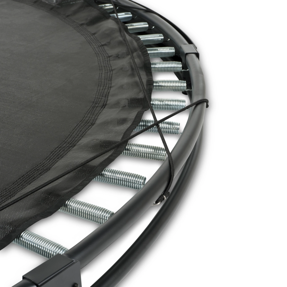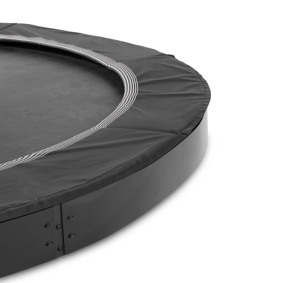 De EXIT InTerra groundlevel sports trampoline ø366cm is een matzwarte, ronde ingraaftrampoline die perfect in elke tuin past. Het innovatieve pad-liftsysteem zorgt voor een stille, soepele sprong en een comfortabele landing. Dankzij elastische straps en het Foot Protection System (FPS) is de trampoline extra veilig, met continu afgedekte veren. Het gegalvaniseerde en gepoedercoate frame biedt langdurige bescherming tegen roest. De trampoline is gelijk aan het maaiveld. De trampoline is volledig repareerbaar, dat wil zeggen dat elk onderdeel eenvoudig vervangen kan worden.