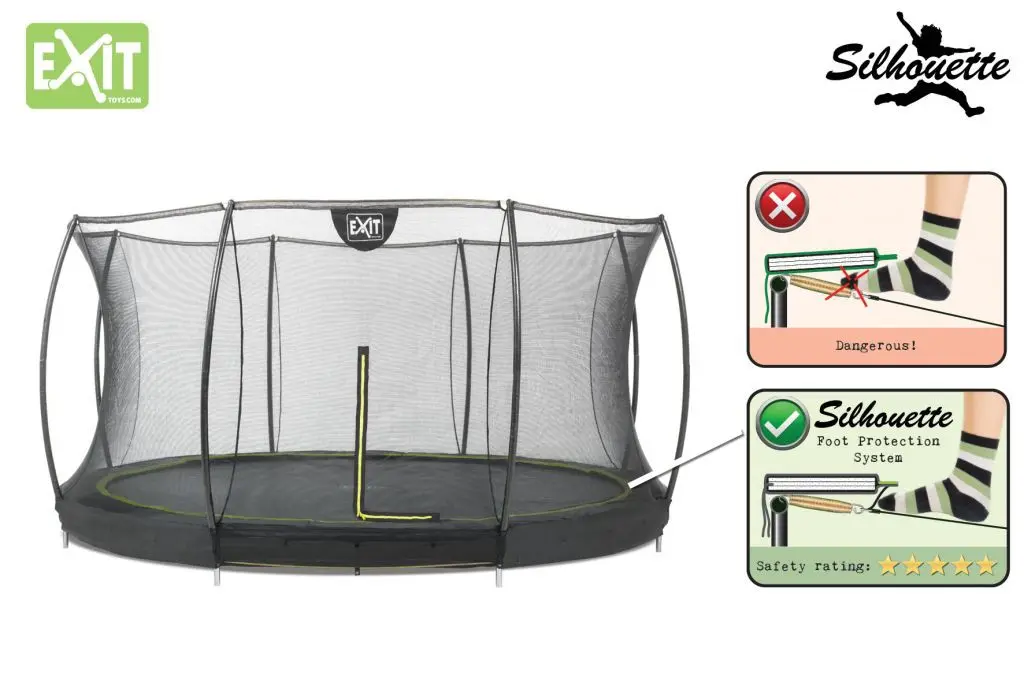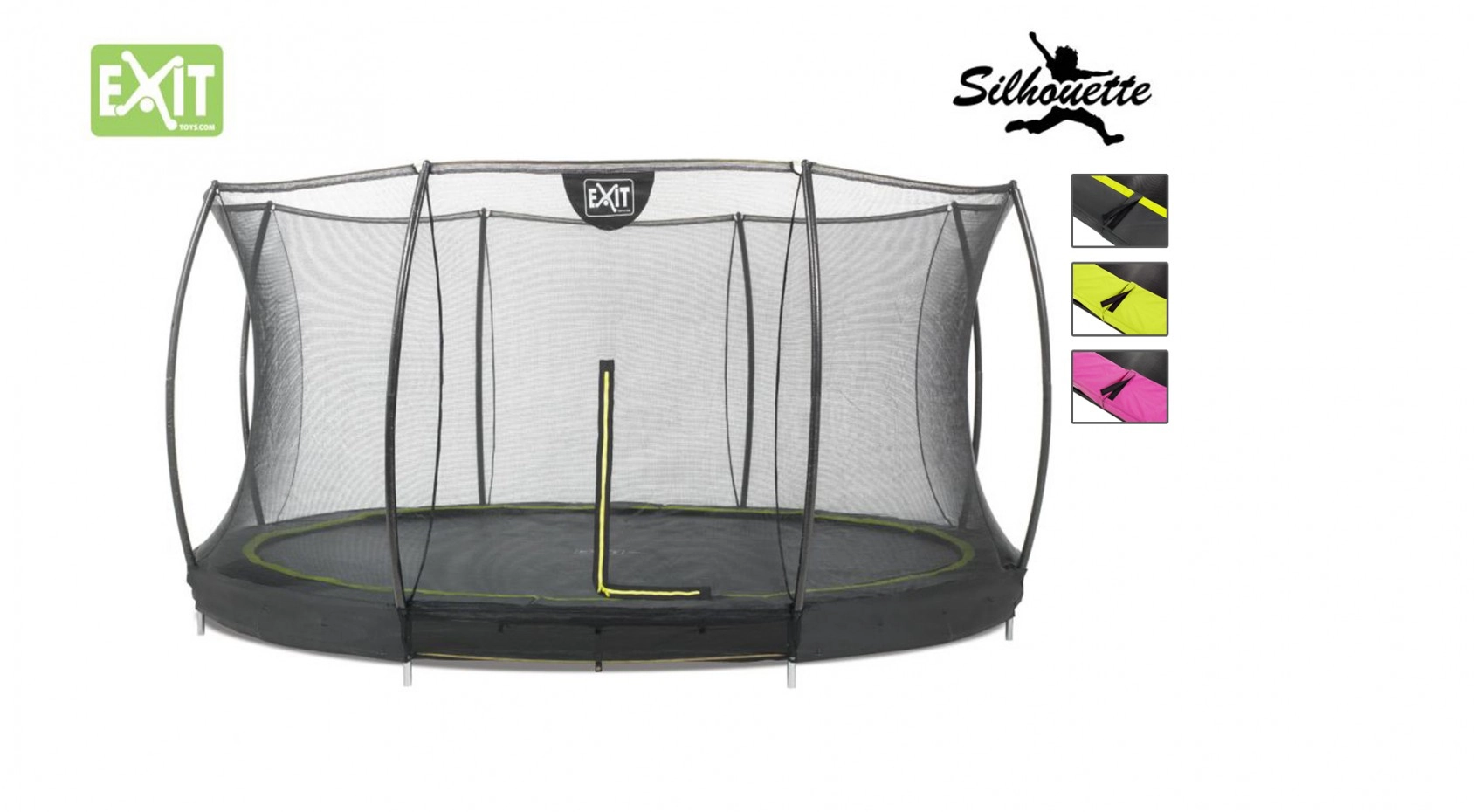 Trampoline EXIT Silhouette Ground is een moderne en fraai vormgegeven inground trampoline! De trampoline EXIT Silhouette is leverbaar in 3 verschillende frisse kleurstellingen. Een stoere kwaliteits trampoline mét veiligheidsnet voor een aantrekkelijke prijs!