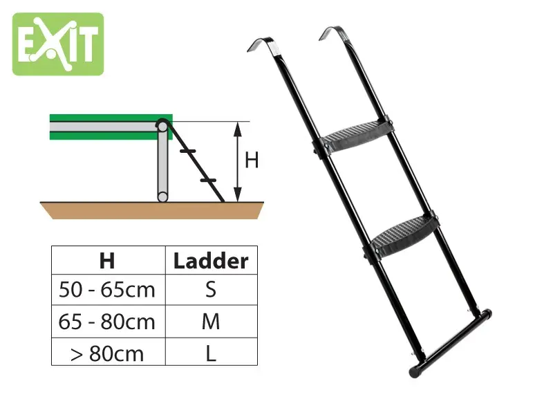 Een ladder om gemakkelijk en veilig op de trampoline te komen. De ladder is voorzien van 2 treden, lengte van de ladder is 60 cm. Geschikt voor een trampoline met de hoogte van 50-65cm, doorgaans is dit een trampoline met een diameter van Ø183cm en Ø244cm.