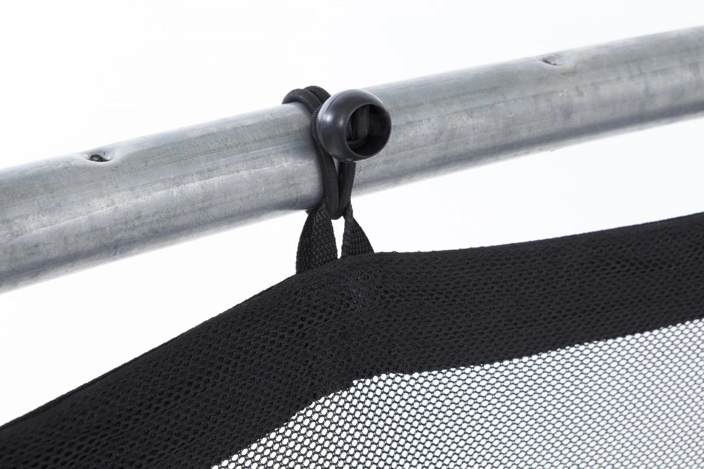 Ben je het ook zat om allerlei speelgoed onder de trampoline vandaan te moeten halen? Kies dan voor een BERG Frame Net Extra. Het Frame Net wordt aan de onderkant van de beschermrand gespannen tot aan de grond. Kinderen, dieren en speelgoed kunnen zo niet meer onder de trampoline komen. Hier worden onveilige situaties mee vermeden, zeker als er ondertussen op de trampoline wordt gesprongen. Het Frame Net Extra is gemaakt van een hoge kwaliteit, weerbestendig net. De verzinkte bevestigings-ogen, lussen en haringen zorgen voor een extra goede verankering. De Frame Netten zijn alleen verkrijgbaar voor onze ronde trampolines.