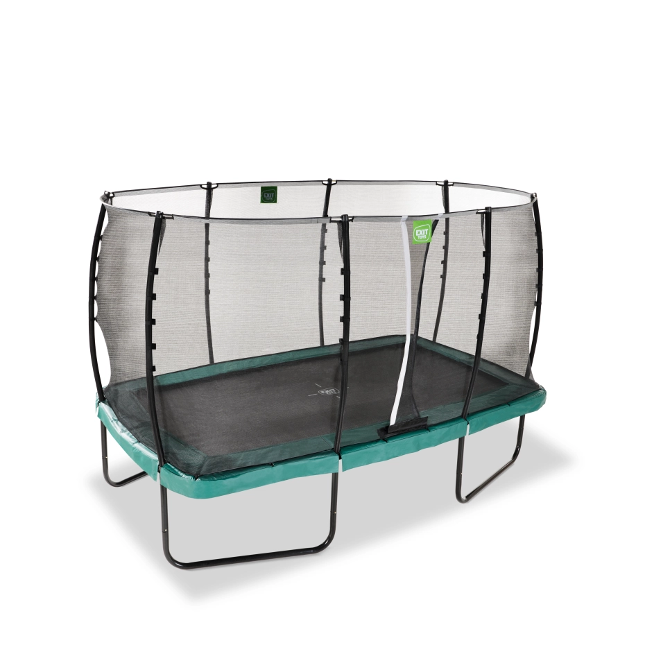 De EXIT Allure Classic trampoline is een trampoline met een beschermrand en een veiligheidsnet. Dankzij het EXIT Foot Protection System (FPS), een net tussen het springdoek en de trampoline beschermrand, komen trampolinespringers nooit met hun voeten tussen de springveren. Het meegeleverde veiligheidsnet heeft een overlappende ingang die automatisch sluit. Ook zijn de palen van het veiligheidsnet bedekt met schuim. Het trampolineframe is gegalvaniseerd en gepoedercoat en heeft daardoor een lange levensduur. Daarnaast is de beschermrand van deze trampoline voorzien van een beschermende, waterafstotende pvc-toplaag. Door middel van gebogen palen en een glasvezelring wordt het veiligheidsnet mooi strak in vorm gehouden. En last but not least: de Allure Classic trampoline heeft dubbel conische veren die zorgen voor een soepele sprong en een zachte landing.