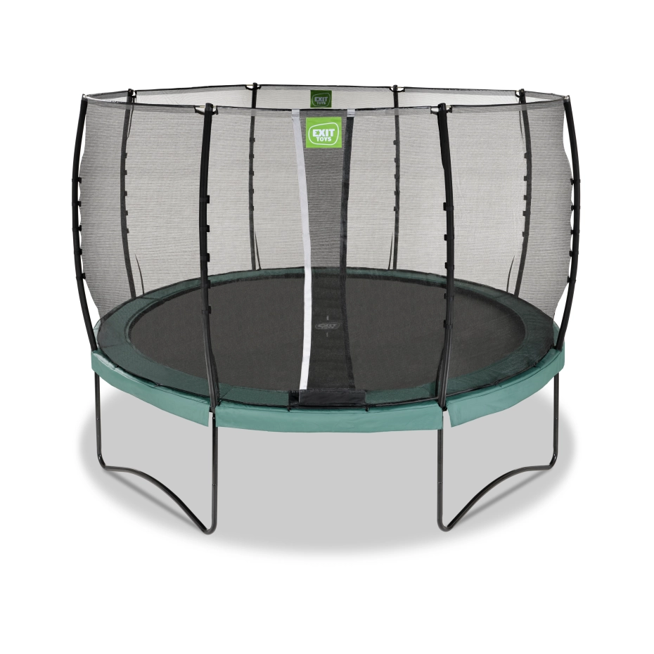 De EXIT Allure Classic trampoline is een trampoline met een beschermrand en een veiligheidsnet. Dankzij het EXIT Foot Protection System (FPS), een net tussen het springdoek en de trampoline beschermrand, komen trampolinespringers nooit met hun voeten tussen de springveren. Het meegeleverde veiligheidsnet heeft een overlappende ingang die automatisch sluit. Ook zijn de palen van het veiligheidsnet bedekt met schuim. Het trampolineframe is gegalvaniseerd en gepoedercoat en heeft daardoor een lange levensduur. Daarnaast is de beschermrand van deze trampoline voorzien van een beschermende, waterafstotende pvc-toplaag. Door middel van gebogen palen en een glasvezelring wordt het veiligheidsnet mooi strak in vorm gehouden. En last but not least: de Allure Classic trampoline heeft dubbel conische veren die zorgen voor een soepele sprong en een zachte landing.