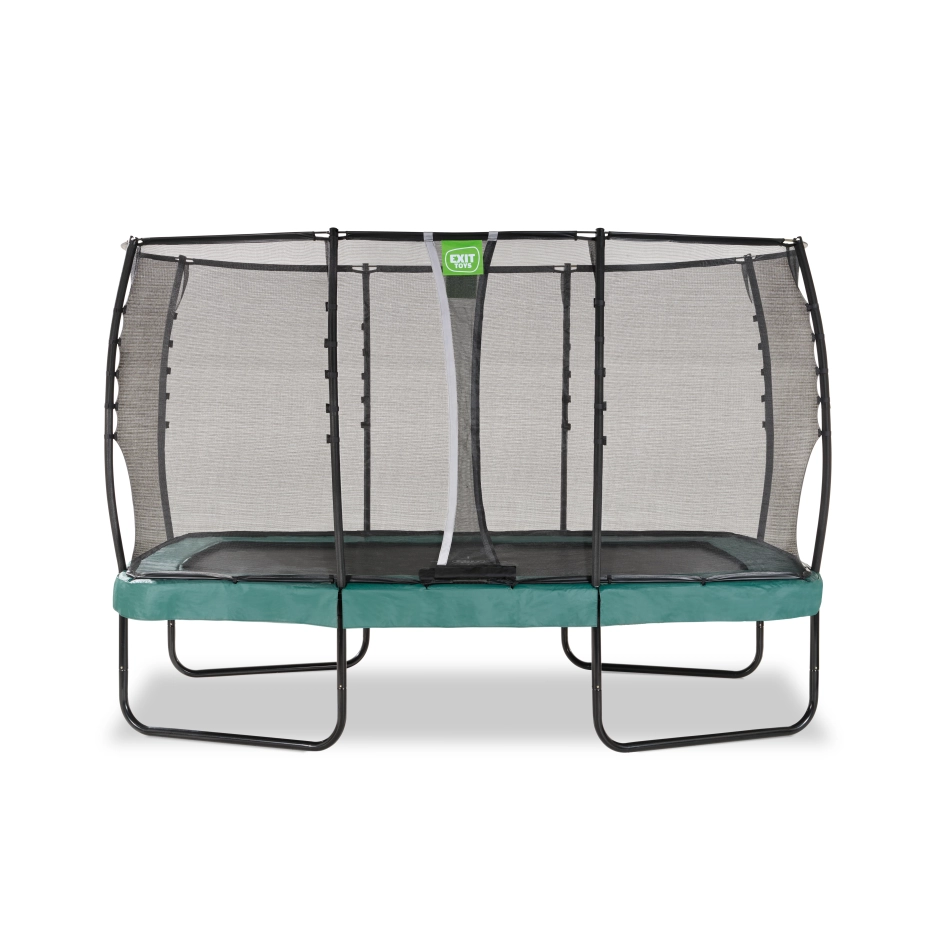 De EXIT Allure Premium trampoline is een trampoline met een beschermrand en een Premium veiligheidsnet. Dankzij het EXIT Foot Protection System (FPS), een net tussen het springdoek en de trampoline beschermrand, komen trampolinespringers nooit met hun voeten tussen de springveren. Het meegeleverde Premium veiligheidsnet heeft een overlappende ingang die automatisch sluit. Ook zijn de palen van het Premium veiligheidsnet bedekt met hoogwaardig XPE schuim. De extra lange dubbel conische veren van maar liefst 21,6 cm zorgen voor de perfecte sprong en een zachte landing. Door het gegalvaniseerde en gepoedercoate frame heeft de trampoline een lange levensduur. Glasvezelringen en gebogen palen houden het veiligheidsnet super strak in vorm en de extra dikke beschermrand met waterafstotende pvc-toplaag beschermt jou én de trampoline optimaal.