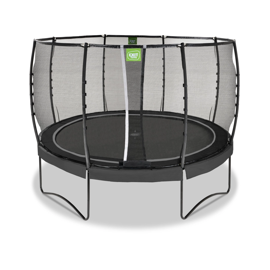 De EXIT Allure Premium trampoline is een trampoline met een beschermrand en een Premium veiligheidsnet. Dankzij het EXIT Foot Protection System (FPS), een net tussen het springdoek en de trampoline beschermrand, komen trampolinespringers nooit met hun voeten tussen de springveren. Het meegeleverde Premium veiligheidsnet heeft een overlappende ingang die automatisch sluit. Ook zijn de palen van het Premium veiligheidsnet bedekt met hoogwaardig XPE schuim. De extra lange dubbel conische veren van maar liefst 21,6 cm zorgen voor de perfecte sprong en een zachte landing. Door het gegalvaniseerde en gepoedercoate frame heeft de trampoline een lange levensduur. Glasvezelringen en gebogen palen houden het veiligheidsnet super strak in vorm en de extra dikke beschermrand met waterafstotende pvc-toplaag beschermt jou én de trampoline optimaal.