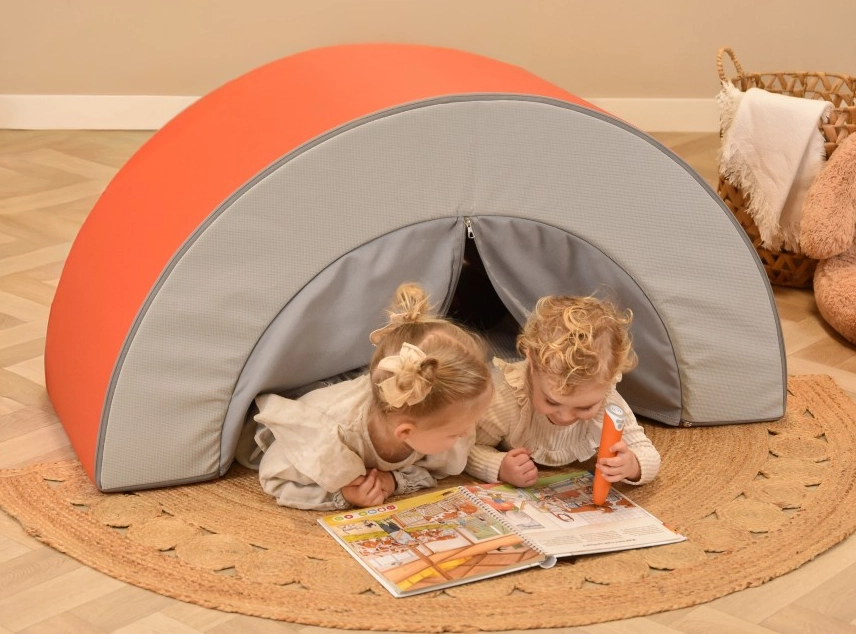 De speelboog biedt eindeloos plezier en ruimte voor fantasie! Kinderen kunnen erin liggen, vanaf glijden of er een tent van maken – alles kan. De boog is gemaakt van stevige, slijtvaste stof en de hoes is wasbaar op 40°C (binnenstebuiten), waardoor hij makkelijk schoon te houden is. Met afmetingen van 120×60×50×19 cm is deze speelboog perfect voor urenlang binnenplezier!