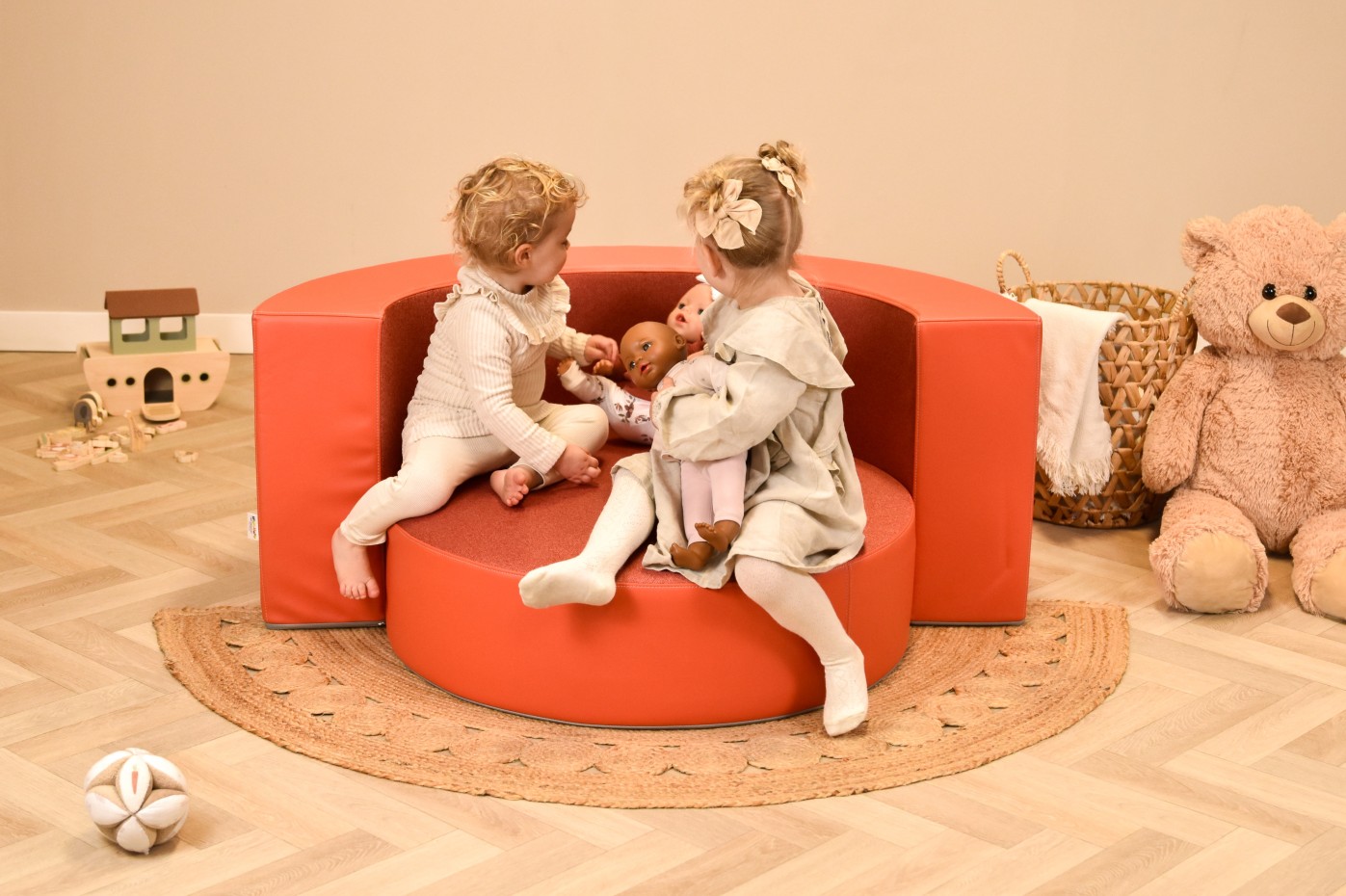 Dit ronde speelkussen zorgt voor eindeloos speelplezier en vrolijke energie! Kinderen kunnen erop springen, rollen, relaxen of hun eigen spel verzinnen, alles kan. De frisse rode kleur brengt direct leven in de ruimte en zorgt voor een vrolijke, speelse sfeer waar elk kind blij van wordt.