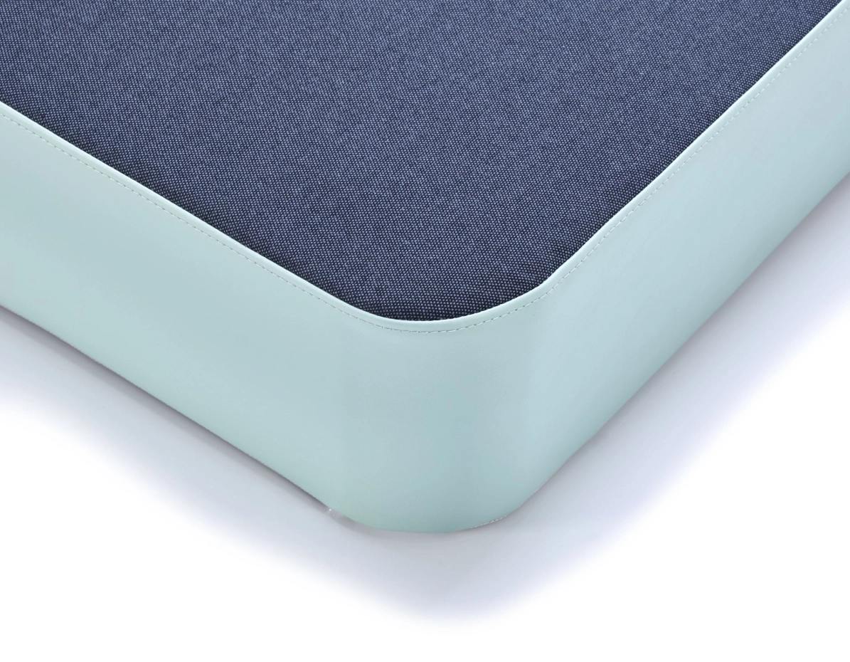 Dit indoor speelkussen biedt een perfecte mix van comfort, kwaliteit en speelplezier. Kinderen kunnen erop springen, relaxen of rustig een boek lezen. De afgeronde hoeken geven het kussen een zachte en verzorgde uitstraling, terwijl de donkerblauw/mint kleur zorgt voor een stijlvolle look die mooi in elk interieur past.