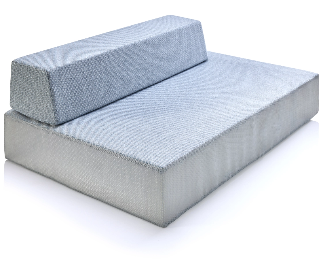 Deze lichtblauwe rugleuning vormt samen met het speelmatras een heerlijke loungebank om op te ontspannen of te spelen. De hoes is wasbaar op 40°C (binnenstebuiten) en de antislip onderkant zorgt dat alles stevig op zijn plaats blijft.