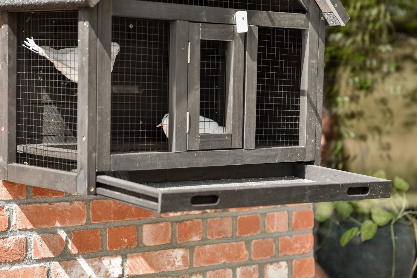 • Het nachthok van de voliere is afsluitbaar