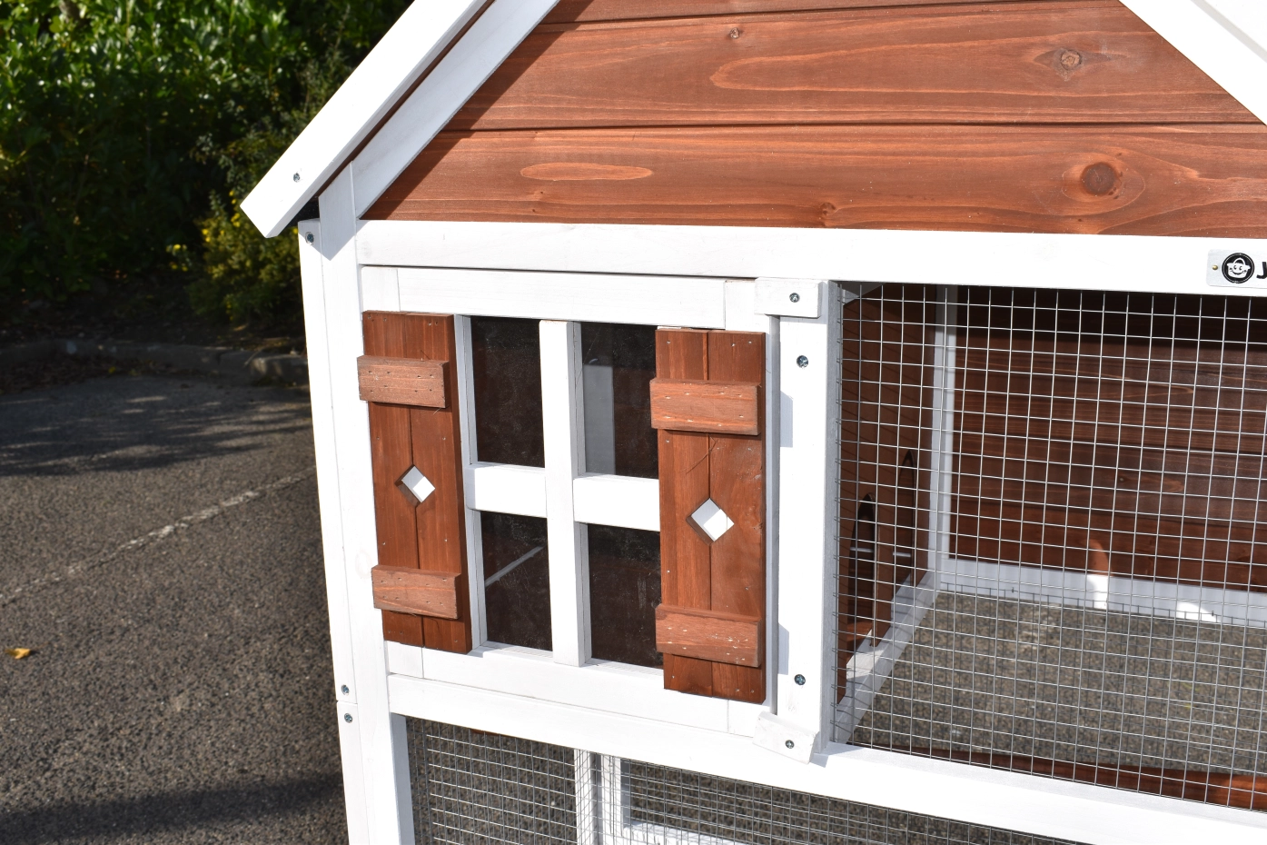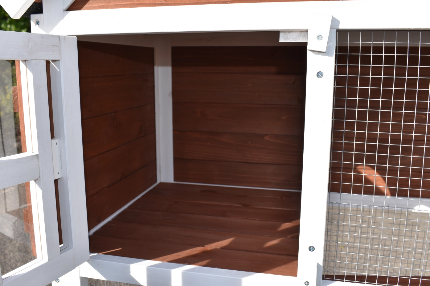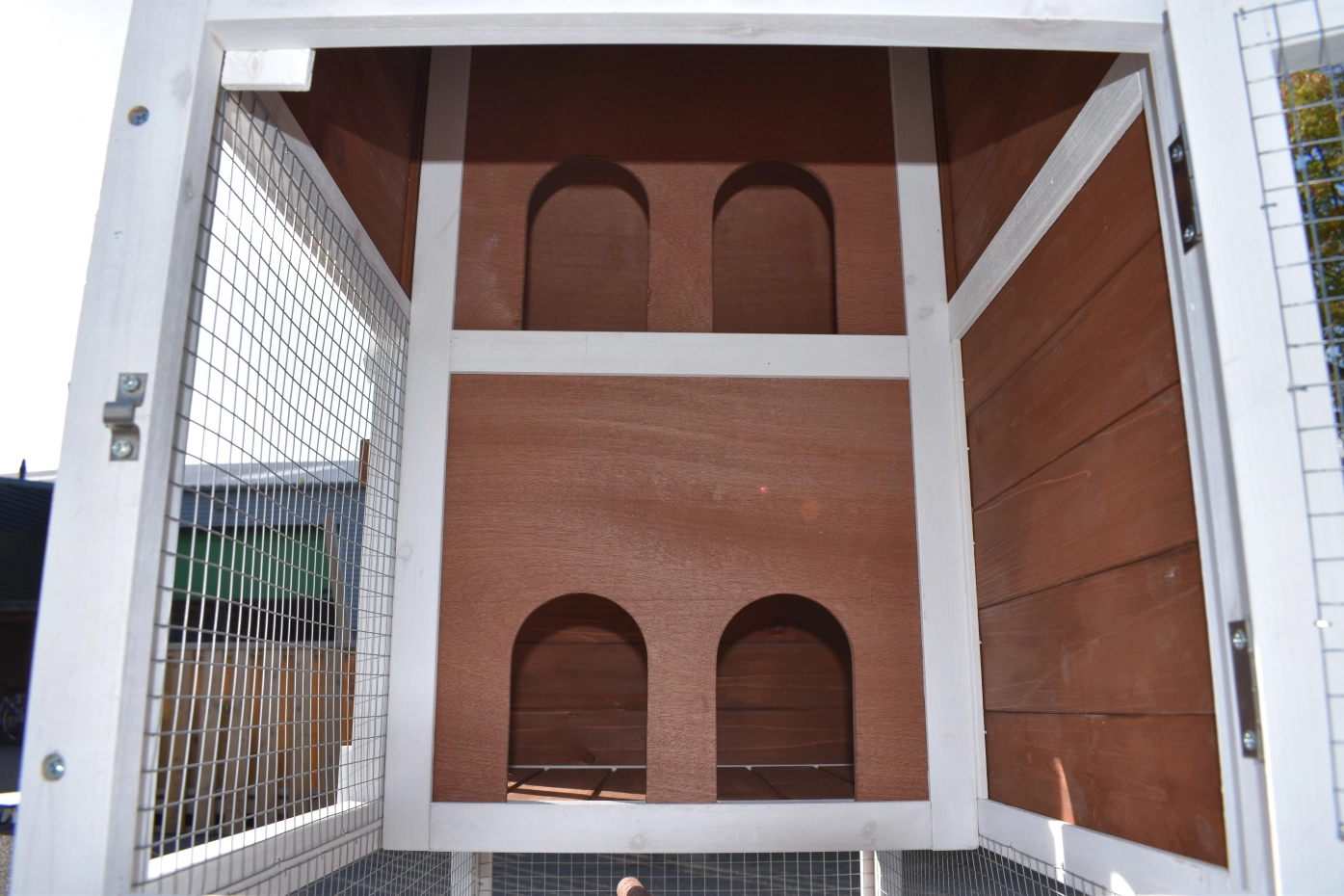 Het voor uw product gebruikte hout is een uniek natuurproduct wat in het land van herkomst, na zorgvuldige selectie, op ambachtelijke wijze is verwerkt. Het is karakteristiek en uniek in elk opzicht. Dit houtproduct heeft bovendien een handmatige bewerking ondergaan. Geen enkel stuk hout is gelijk van vorm, structuur of kleur, zodat kleurschakeringen zelfs binnen één stuk hout onvermijdelijk zijn. Windbarsten, haarscheuren, oneffenheden en de aanwezigheid van grote en kleine noesten getuigen van hun oorsprong en jarenlange groei. Oneffenheden zijn meestal handmatig bijgewerkt met houtvulling. Door gebruik en door invloed van licht zullen nieuwe dierenverblijven na verloop van tijd een warmere kleur krijgen. Kleurverschillen onderling en ten opzichte van het showmodel zijn daarom voor de hand liggend. Het product is voorzien van een beitsafwerking in de kleuren zoals op de foto. U dient het hout nogmaals te beitsen om schimmelvorming en rotting te voorkomen. Beits kunt u direct handig meebestellen.