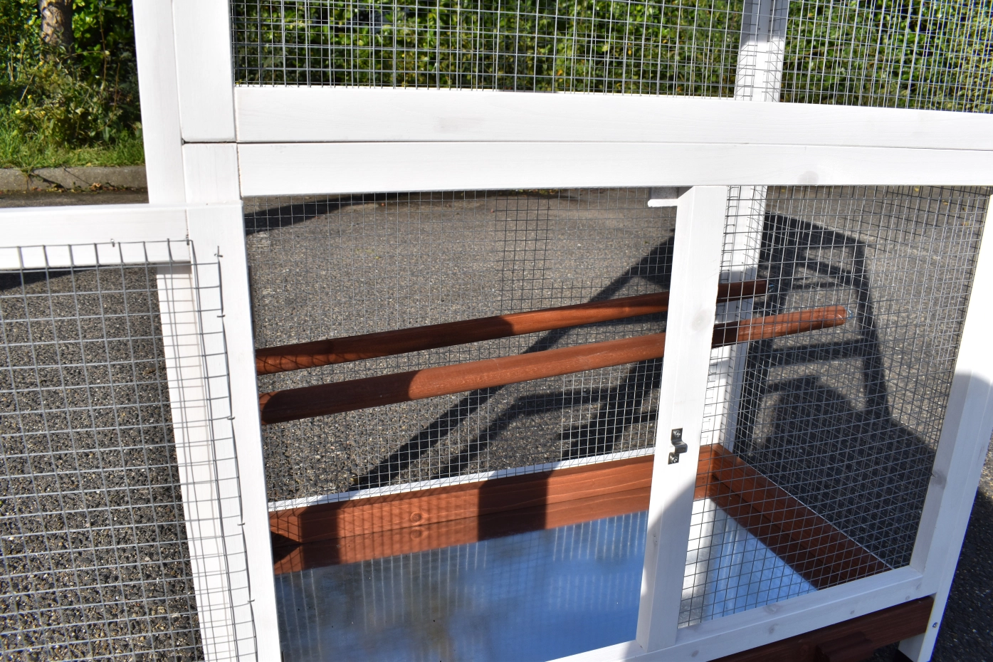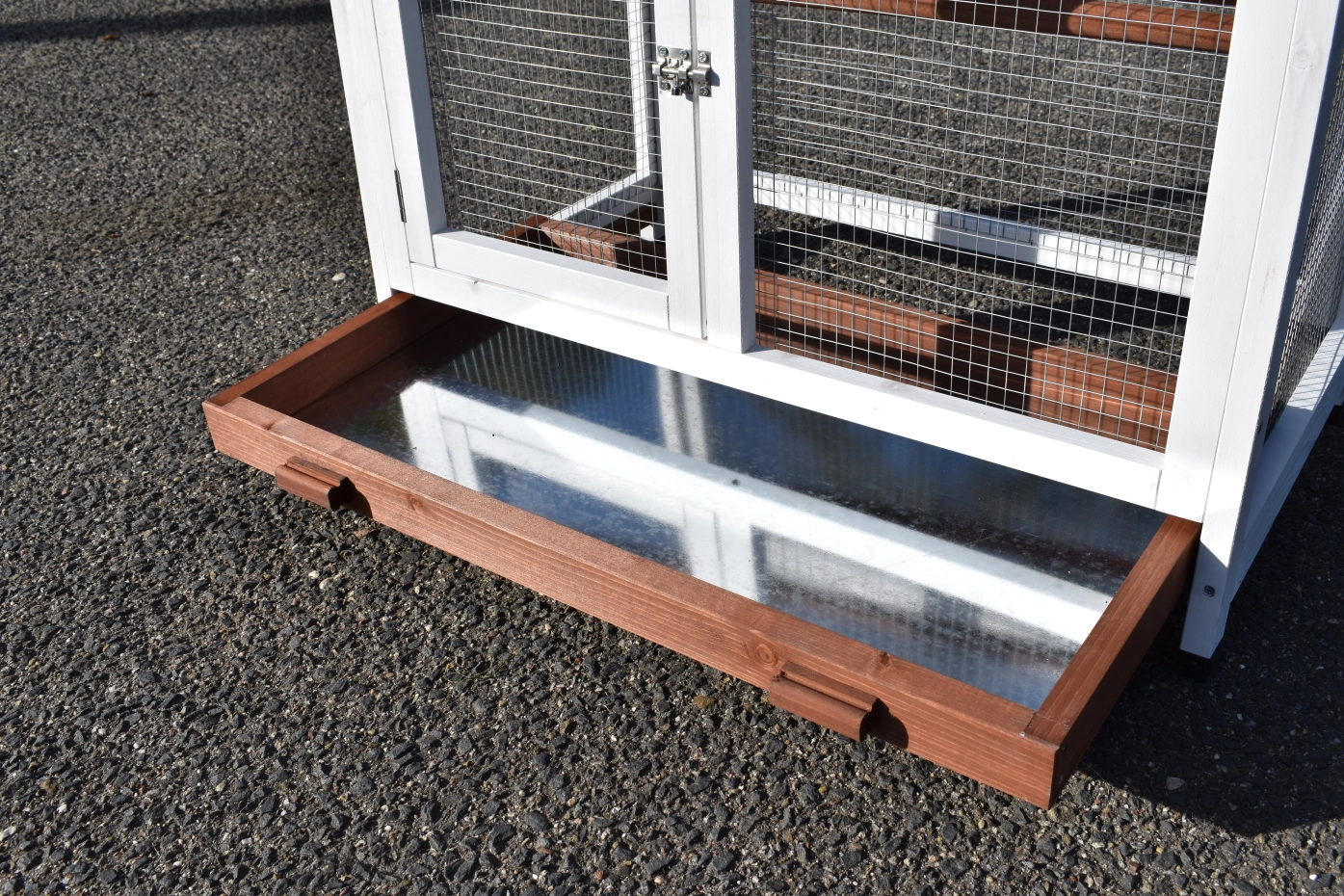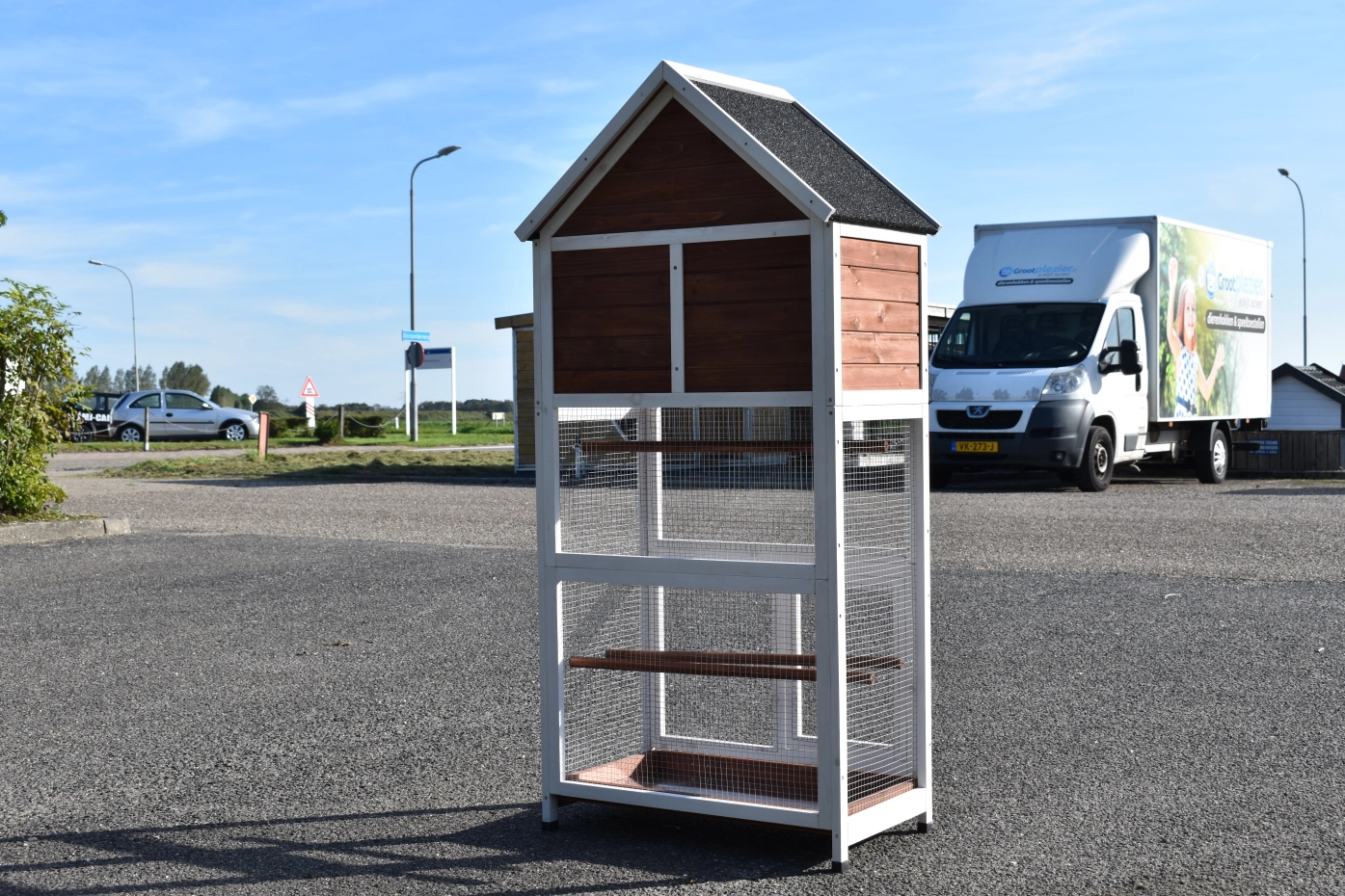 - Uitschuifbare mestlade om de volière handig schoon te maken