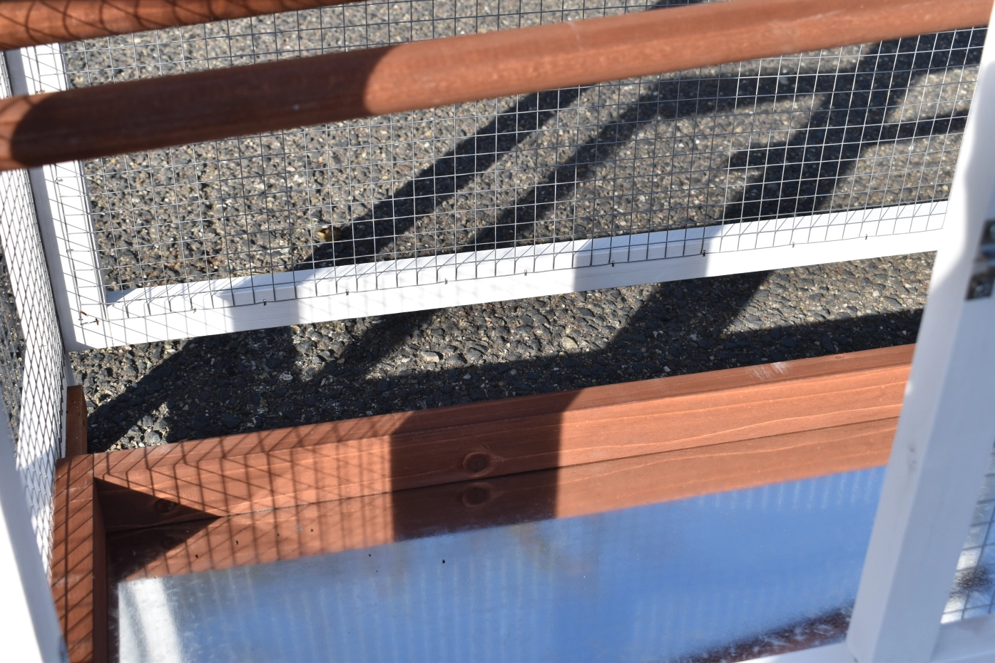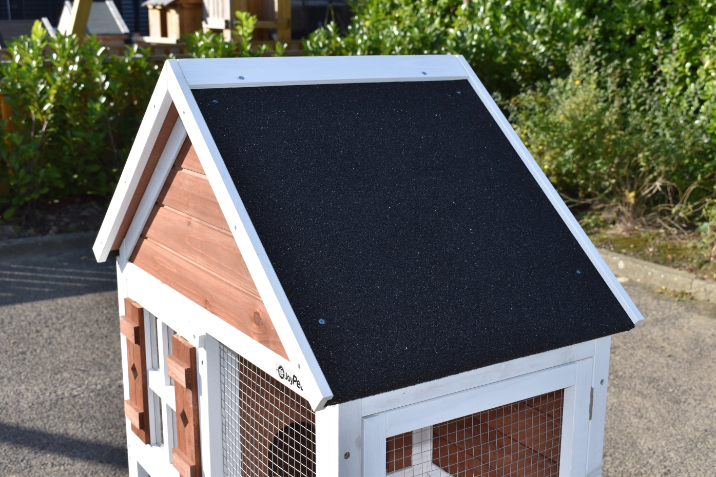- Wanneer het hok niet op een beschutte plaats staat, dan adviseren wij om het te verankeren