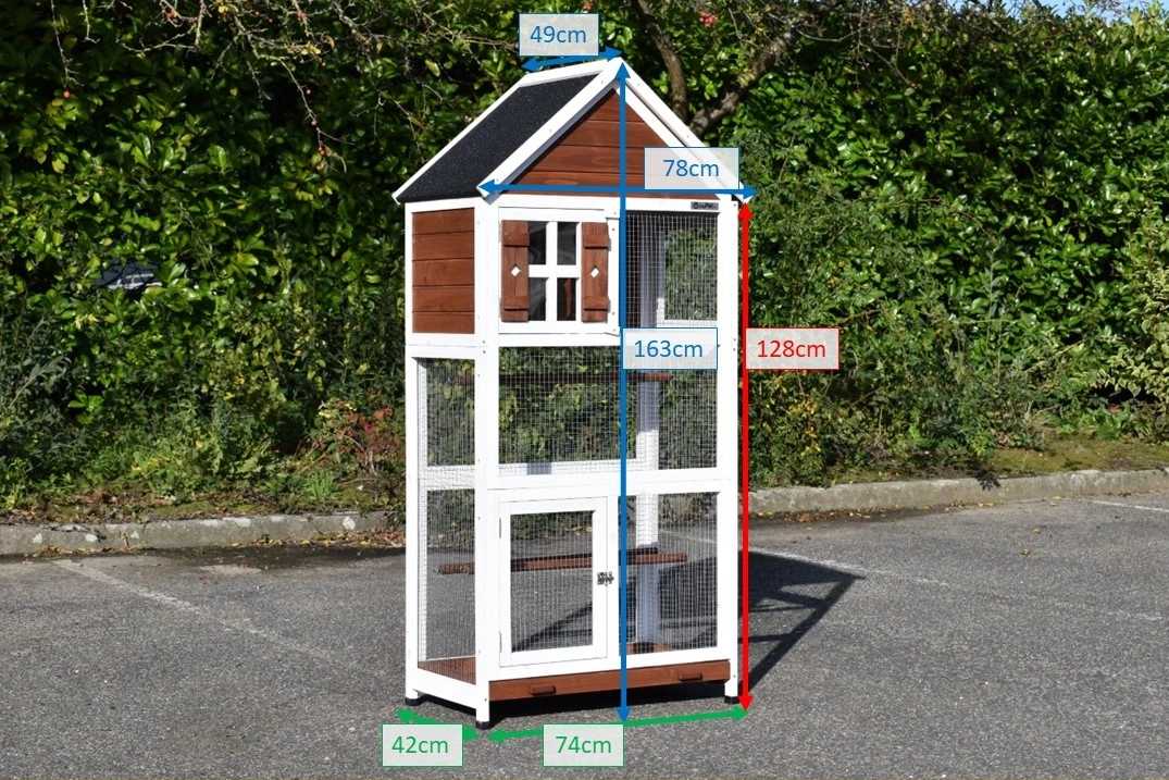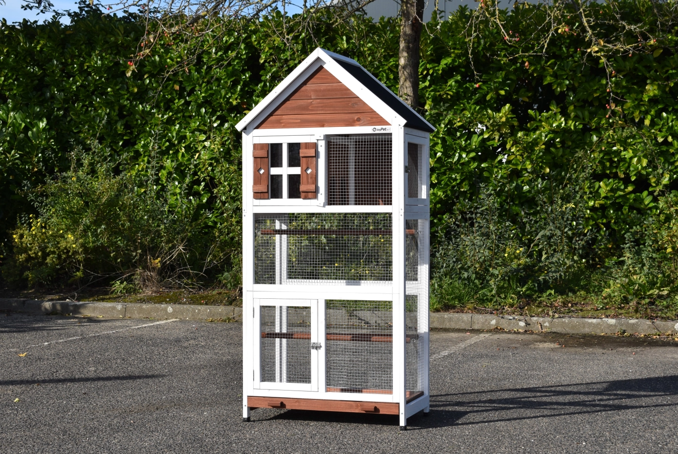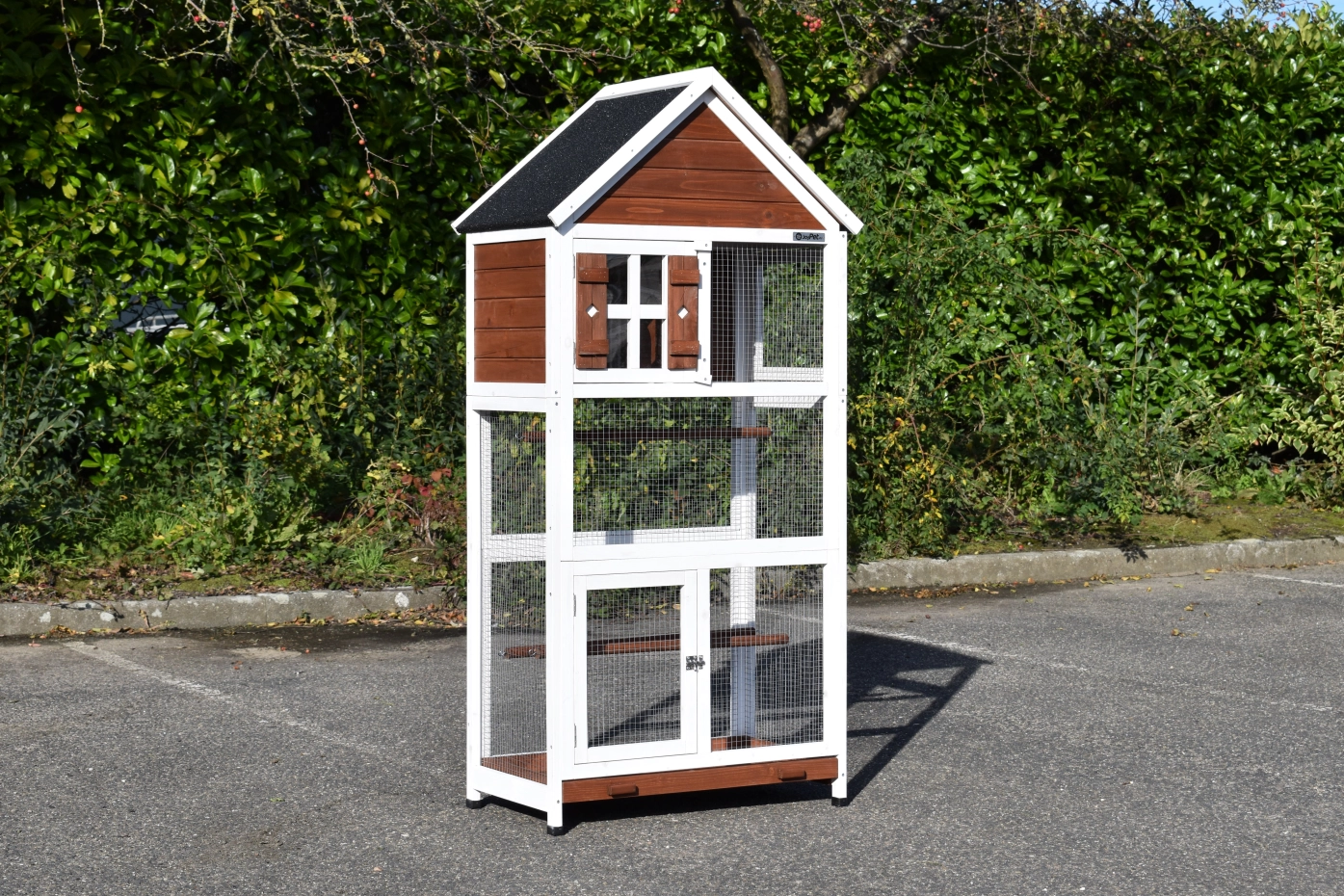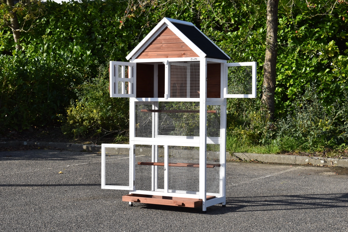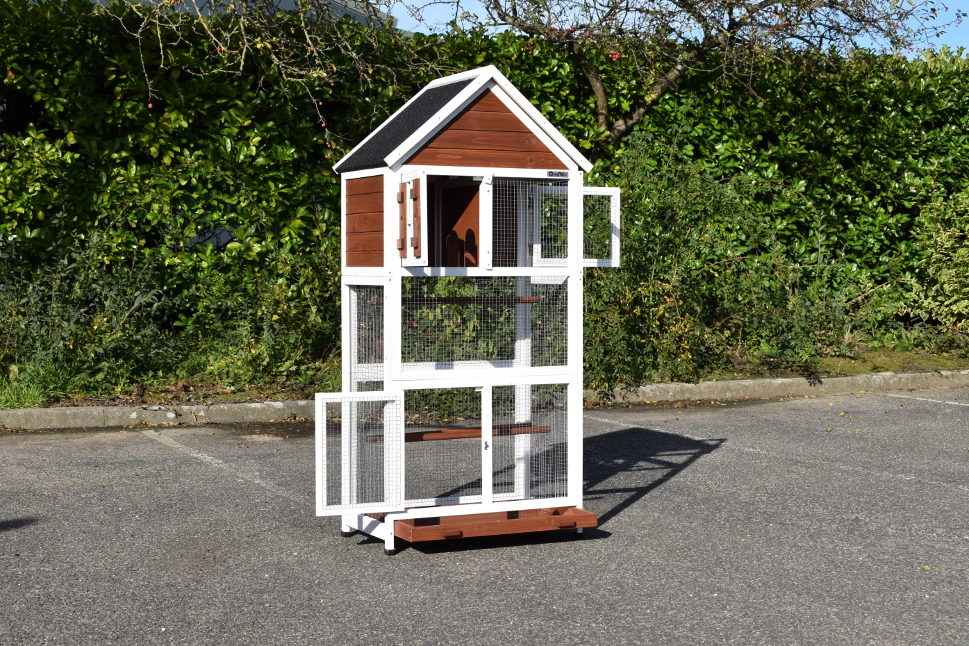 De volière Ninthe is een goedkope volière met aantrekkelijke kleuren. De volière heeft een ruim nachthok, welke 4 openingen heeft. De volière is voorzien van 3 deurtjes en heeft een schuiflade. Hierdoor is het hok makkelijk schoon te maken.