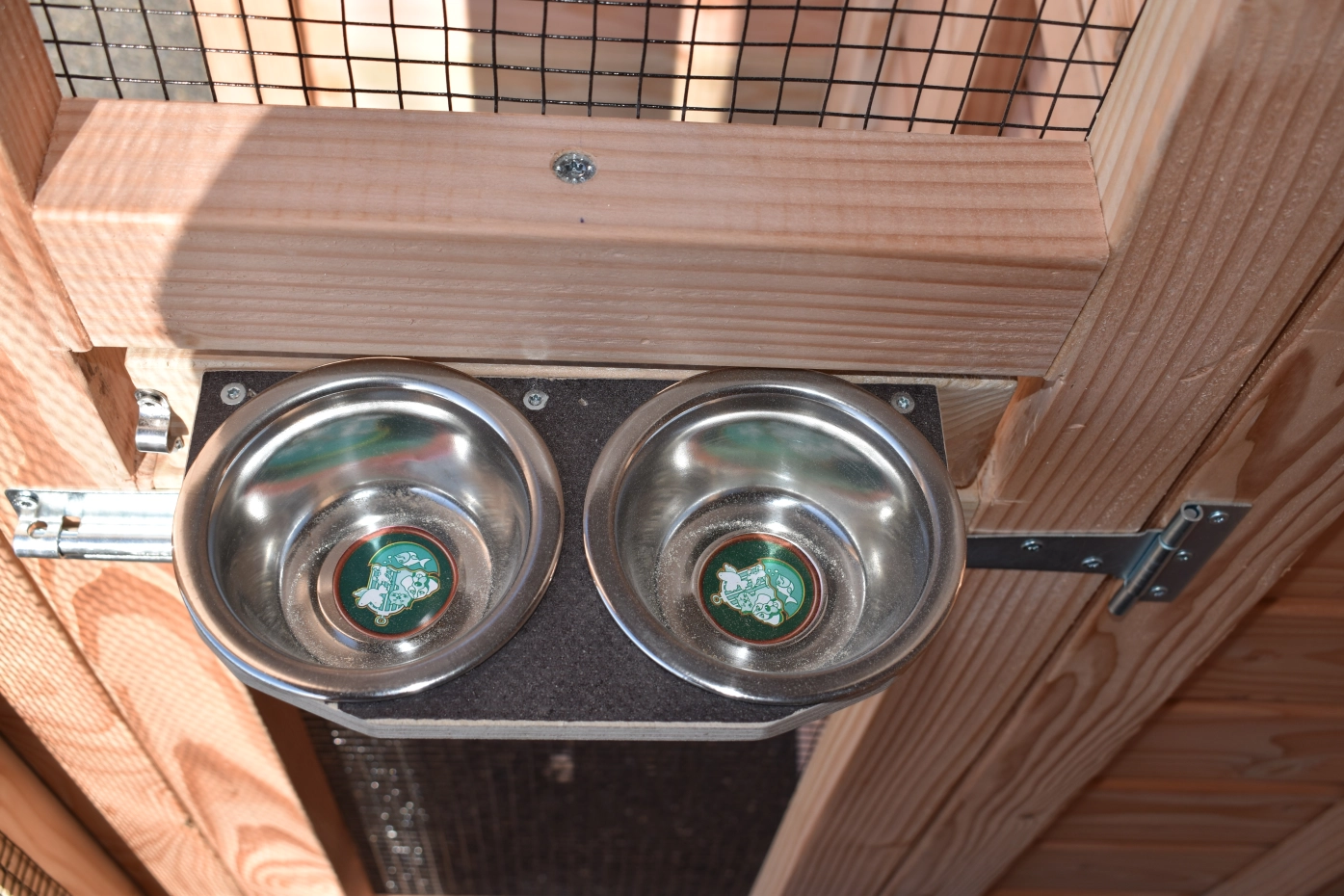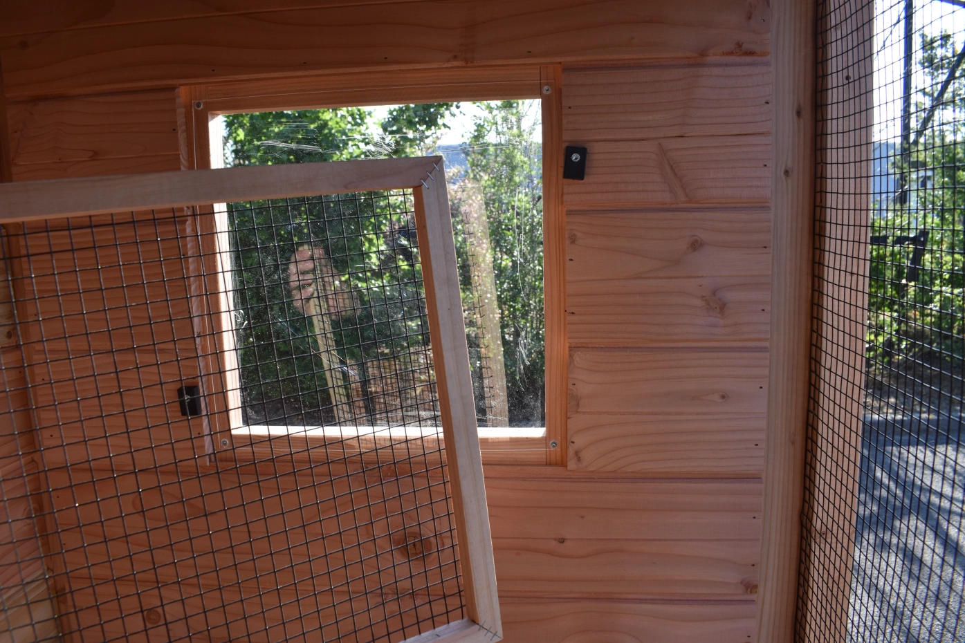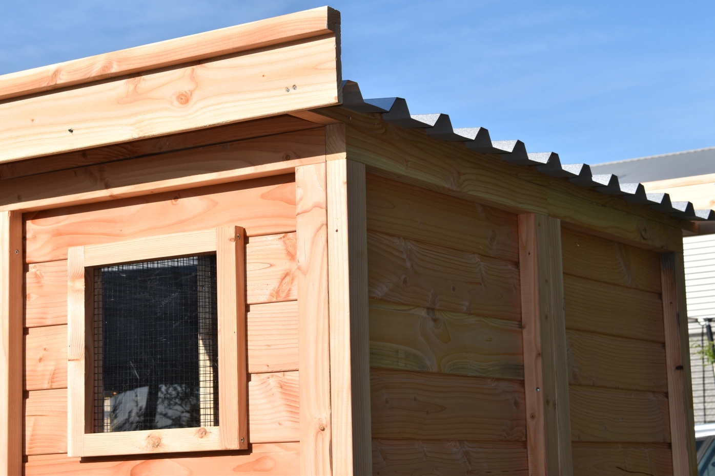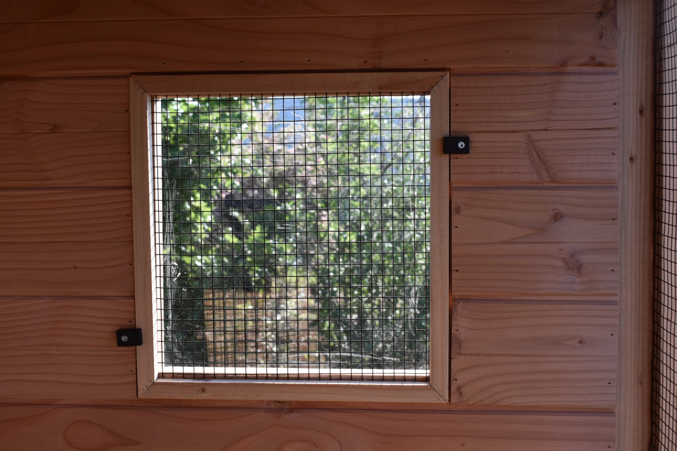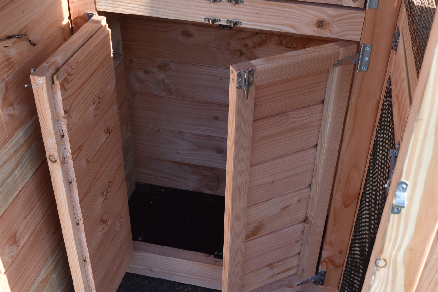 - De wanden zijn helemaal kant en klaar. Planken zitten erop gespijkerd, deuren zijn afgehangen en voorzien van sloten, gaas is erop gespannen, enz. Hierdoor is de montage heel eenvoudig!