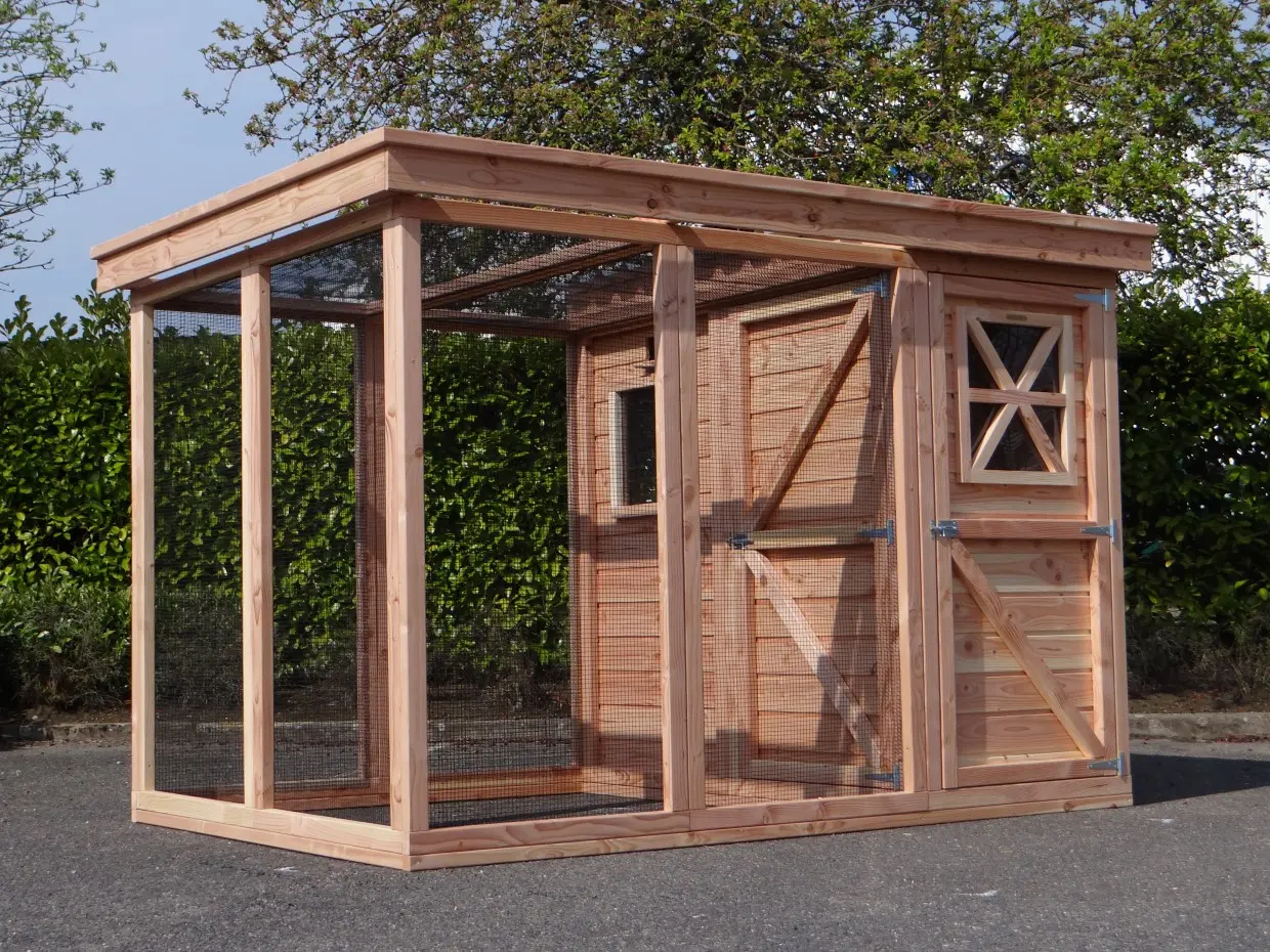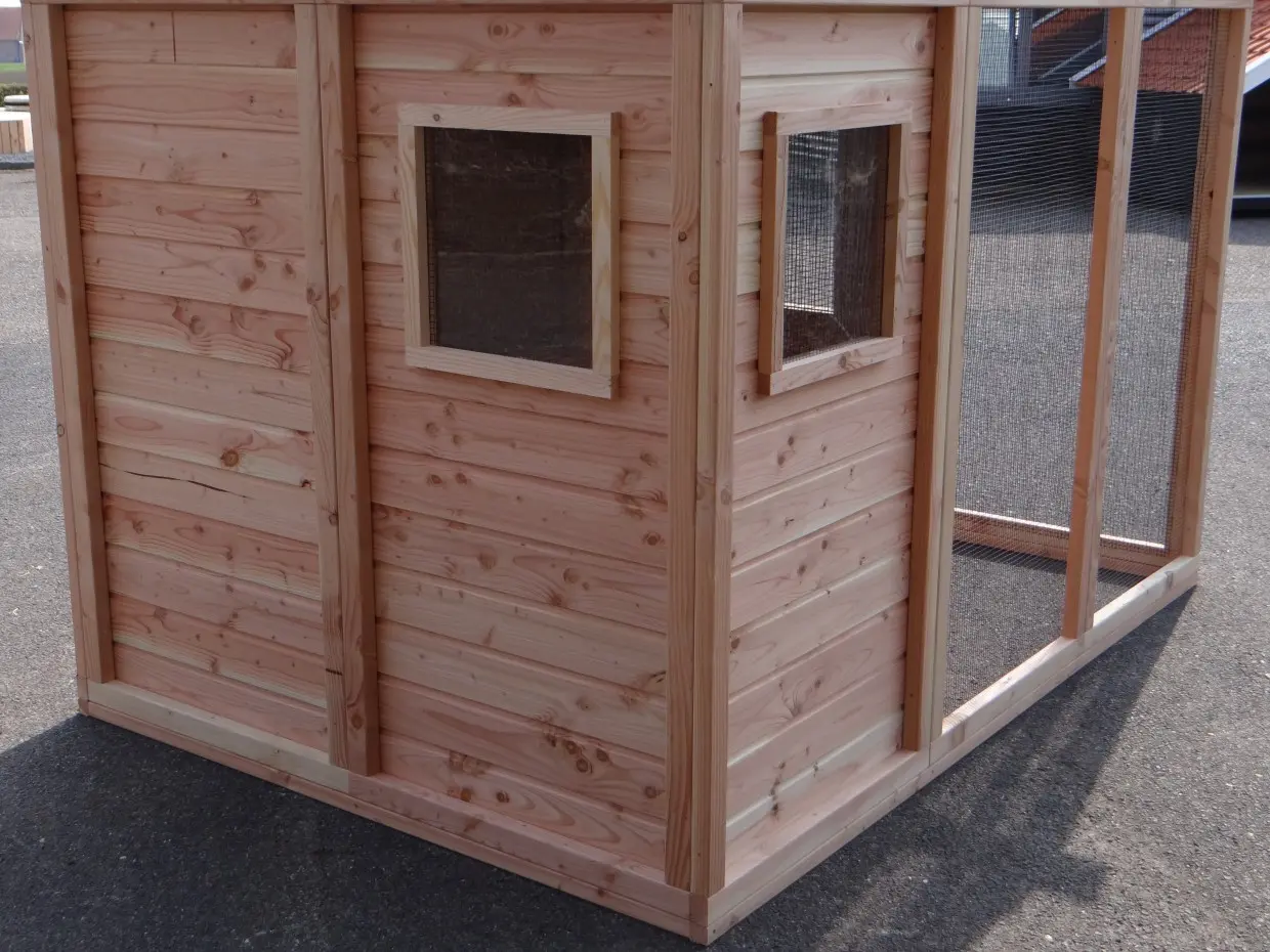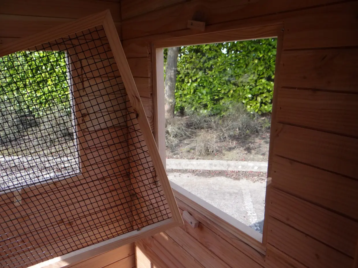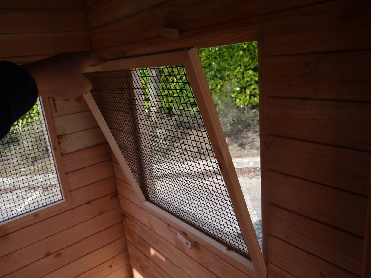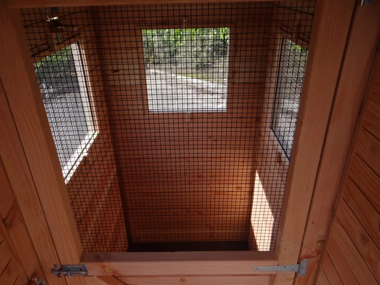- Als de luchtvochtigheid buiten hoog is, wordt het ook vochtig in een hok. Om schimmelvorming te voorkomen kunt u de binnenkant van het hok beitsen.