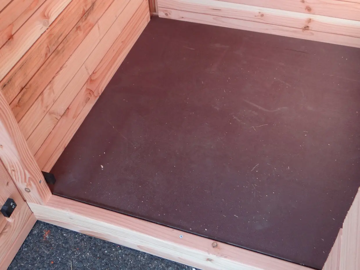 - Bij dit hok wordt een fundering meegeleverd van 4,5 cm hoog. Hierop worden de panelen vast geschroefd. Wij raden aan om een stevige en vlakke ondergrond te voorzien met bijvoorbeeld tegels of opsluitbanden.