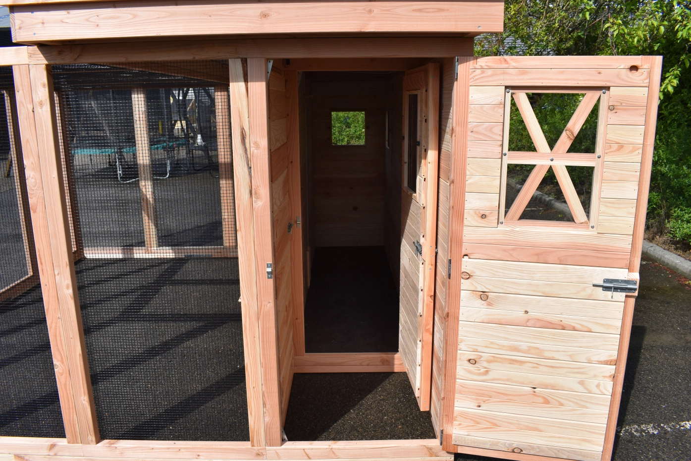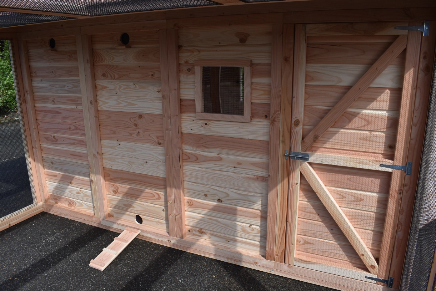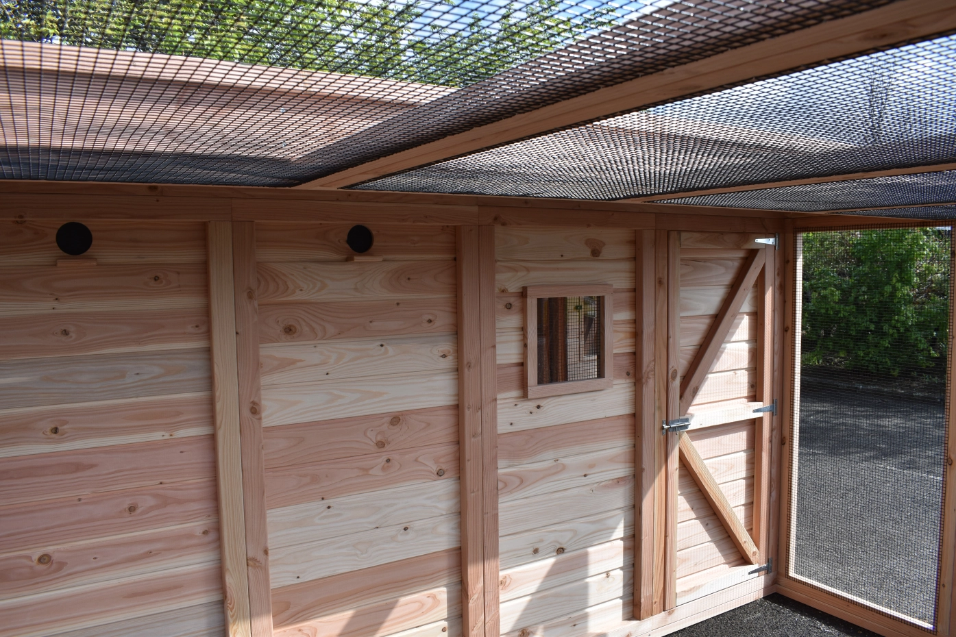 - Het nachthok van de voliere is afsluitbaar