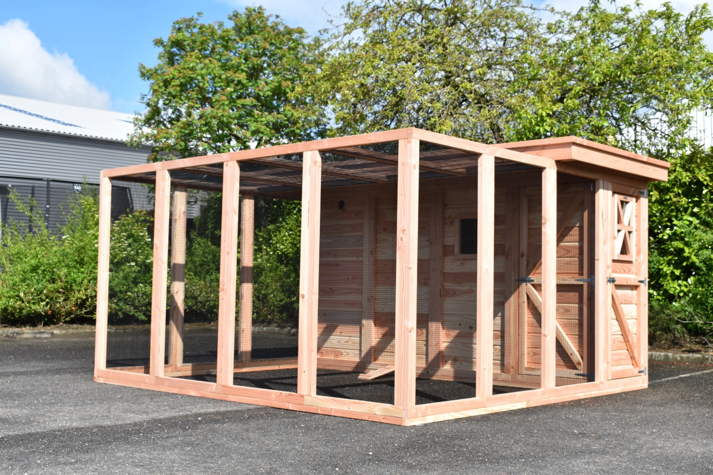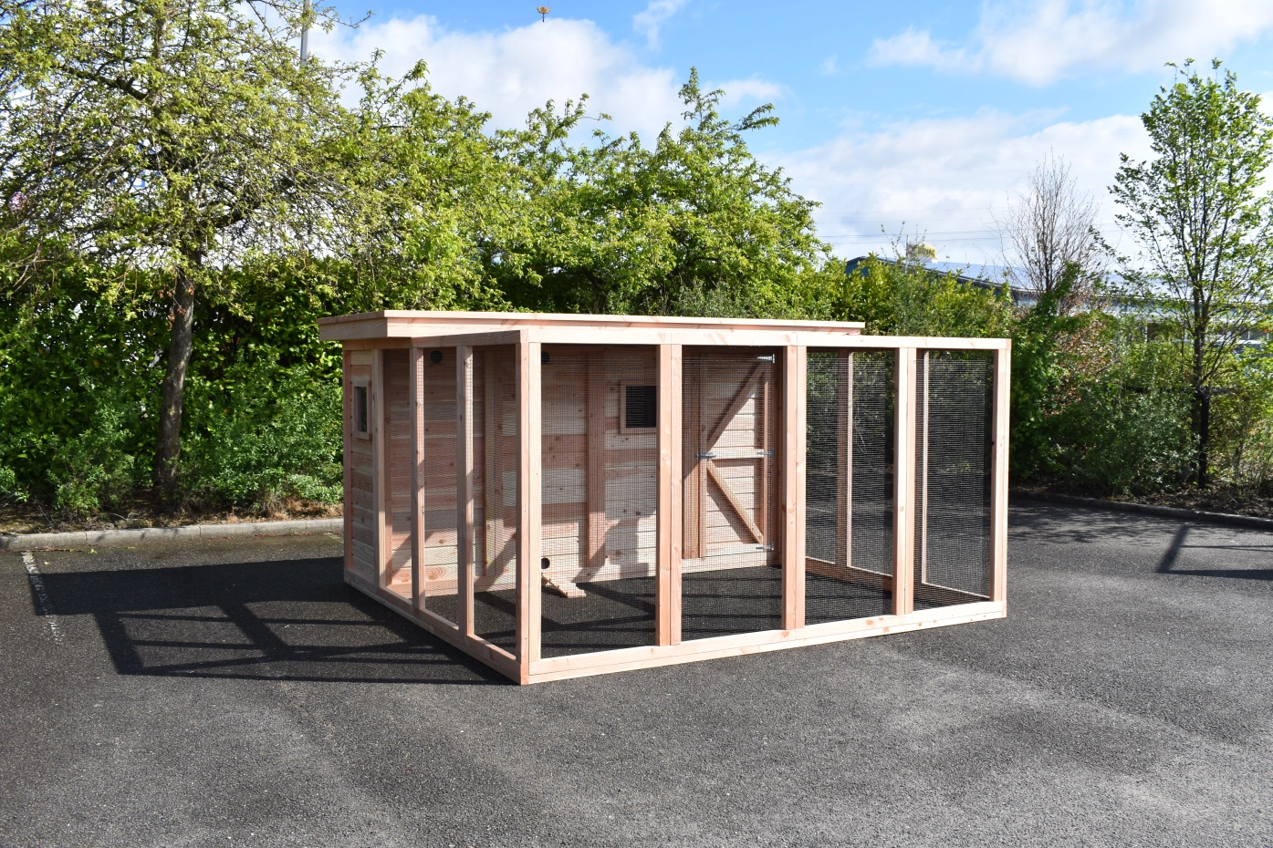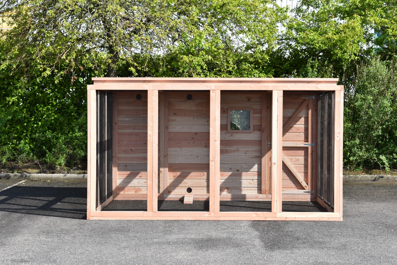 - Het nachthok van de voliere is afsluitbaar