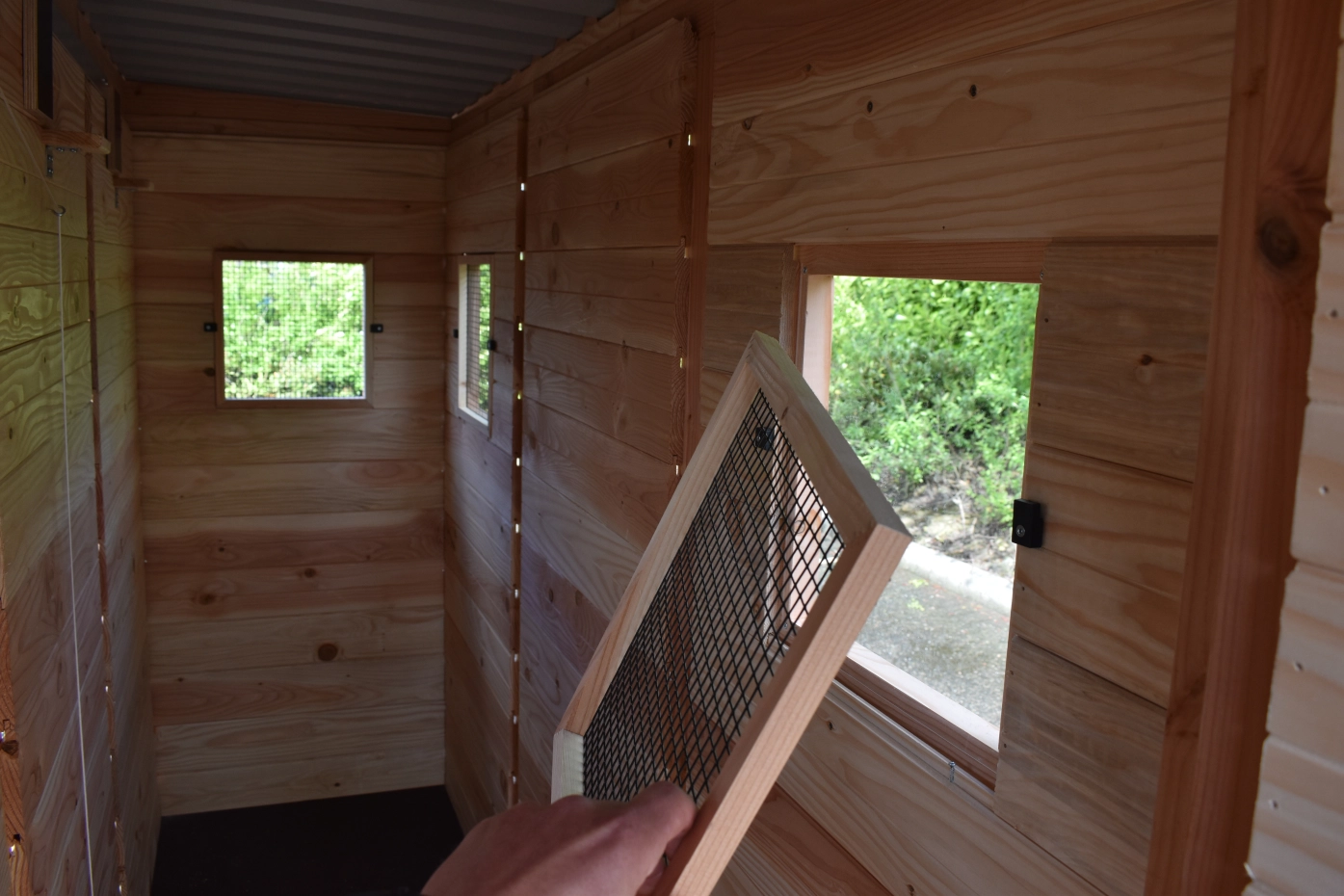 - Als de luchtvochtigheid buiten hoog is, wordt het ook vochtig in een hok. Om schimmelvorming te voorkomen kunt u de binnenkant van het hok beitsen.