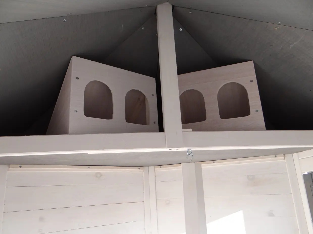 - Deze voliere is voorzien van nestblokken