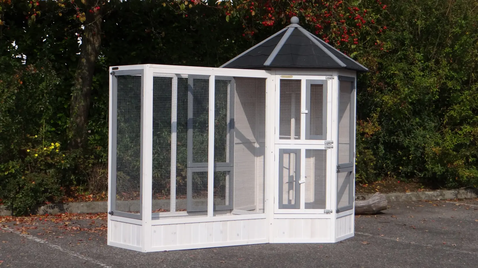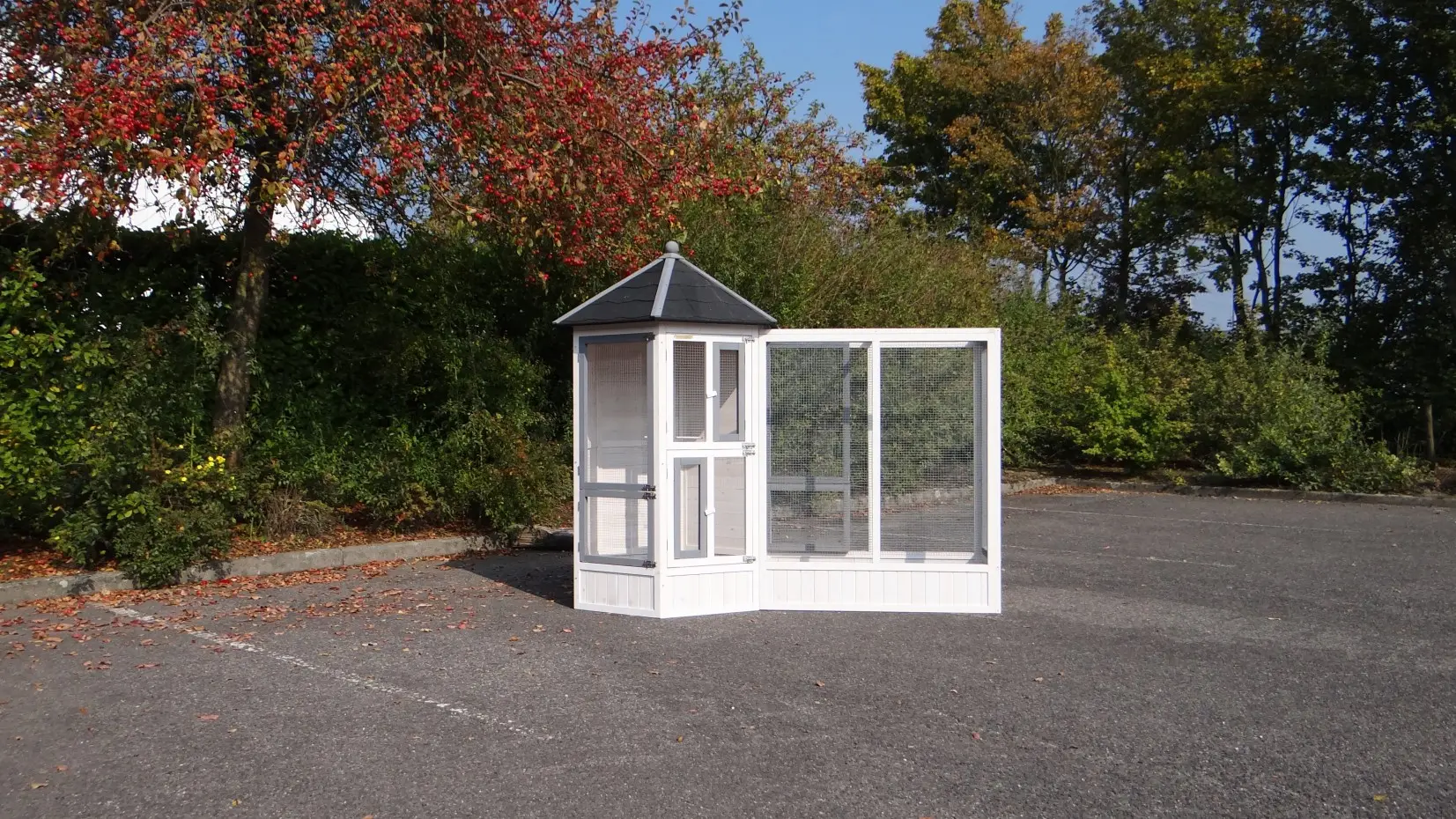 - Deze volière is voorzien van 2 nestkasten bovenin de kooi