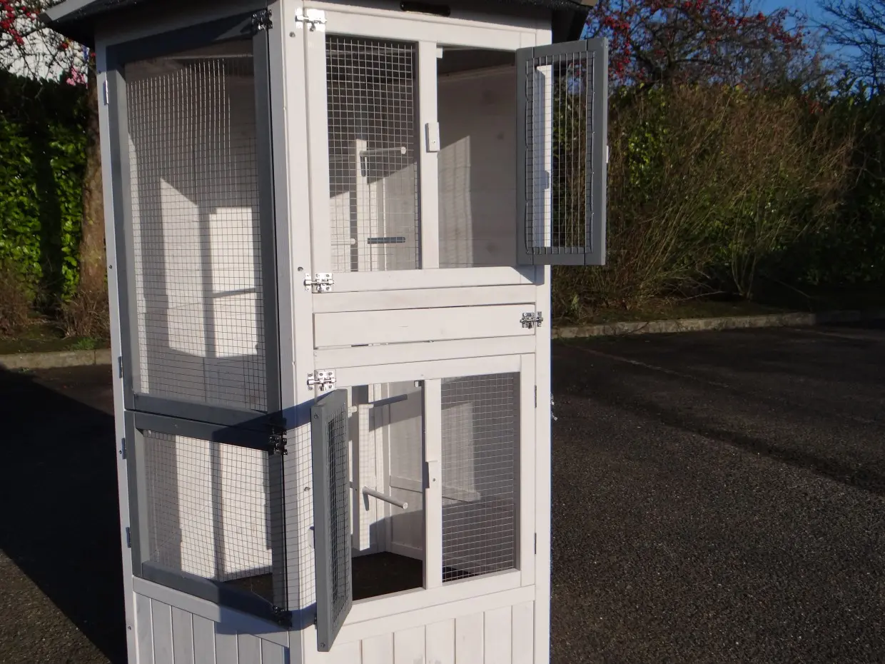 - Deze volière is voorzien van 2 nestkasten bovenin de kooi