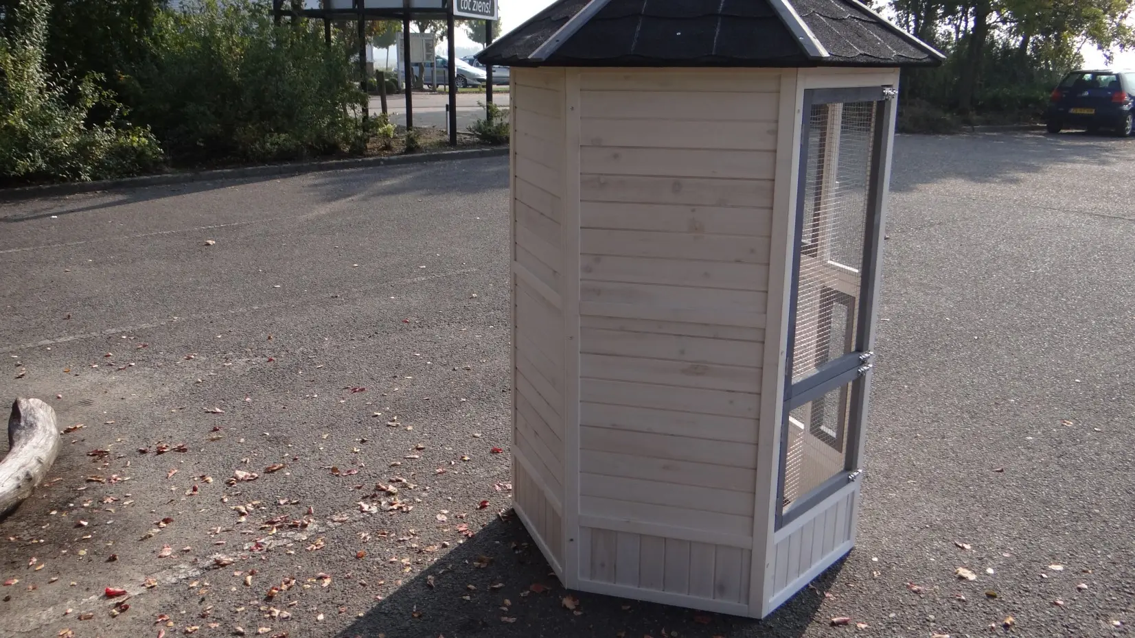 - Deze volière is gemaakt van mooi dennenhout