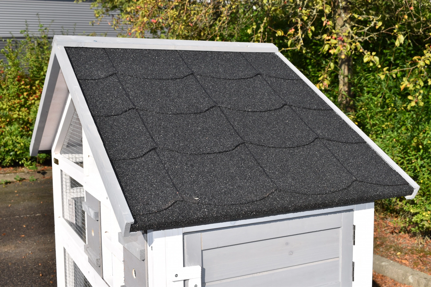 - Het dak van de volière is afgewerkt met dakleer met leislag