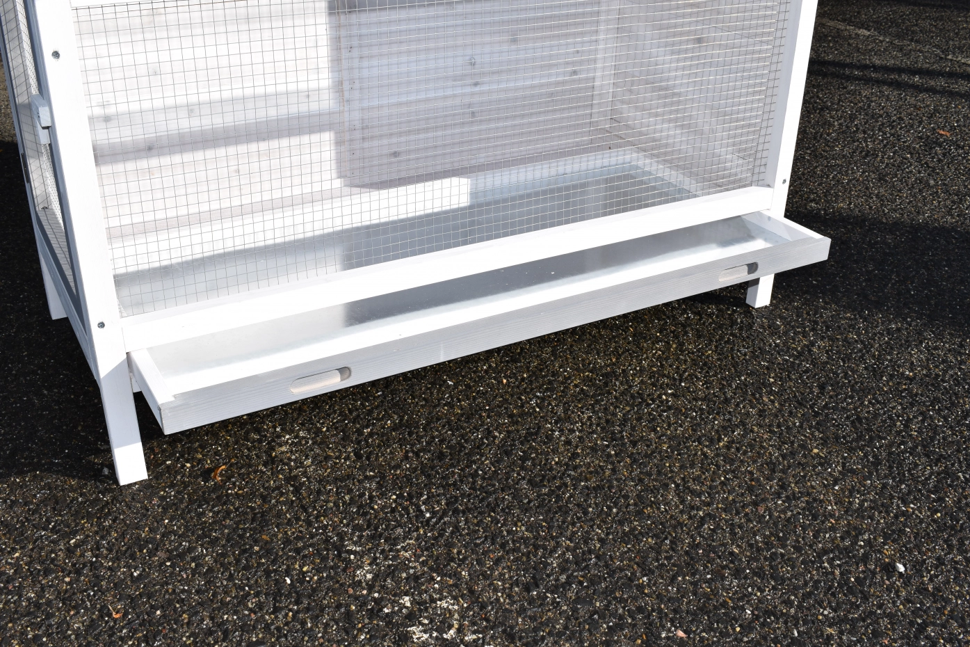 - Uitschuifbare mestlade om de volière handig schoon te maken
