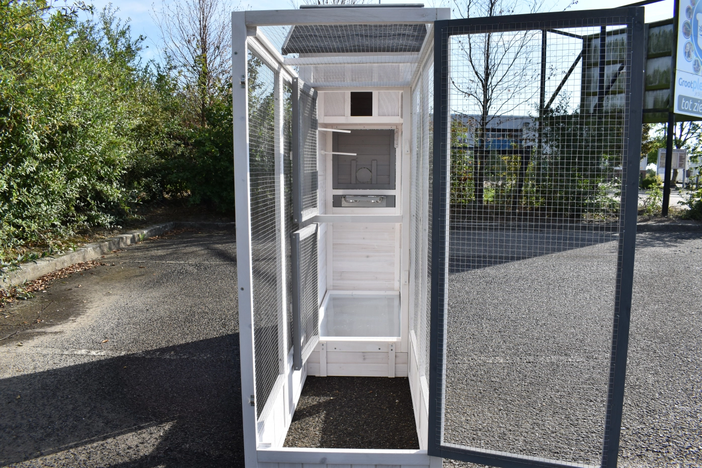 - Deze volière heeft ruime deuren voor optimale toegankelijkheid