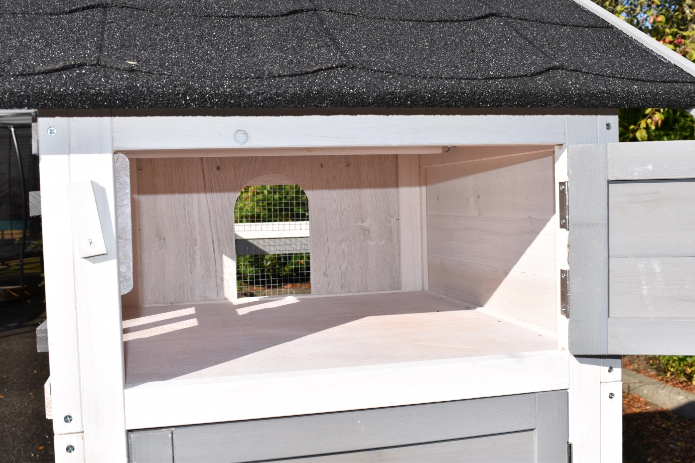 - Het nachthok van de voliere is afsluitbaar