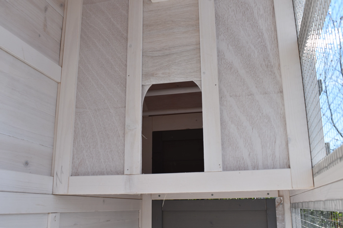 - Deze volière is gemaakt van mooi dennenhout
