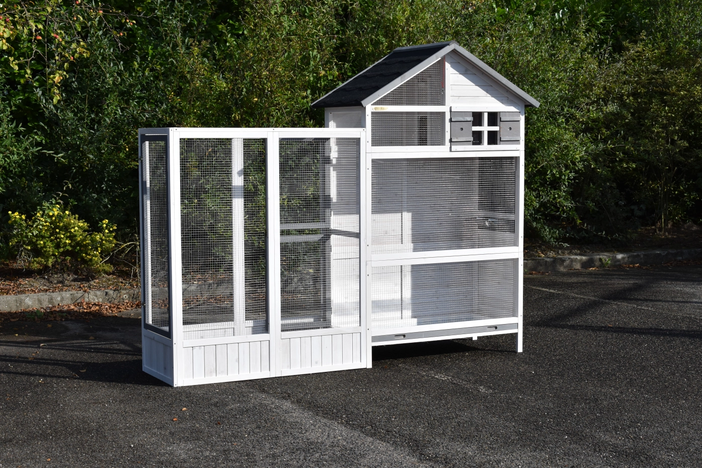 - Deze volière is voorzien van praktische deuren