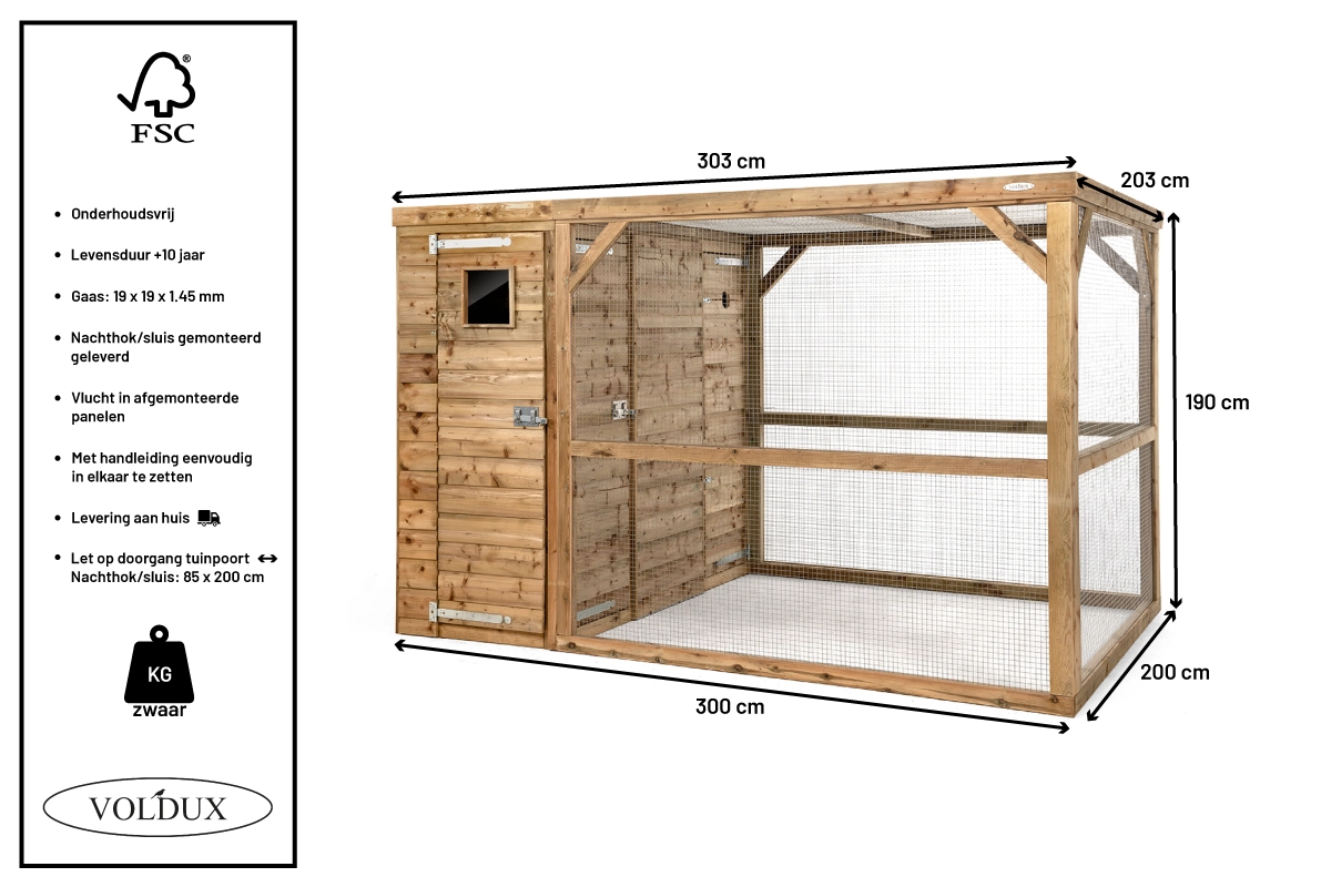 | Buitenwerkse afmetingen incl. dak (BxDxH) | 303x203x190cm |