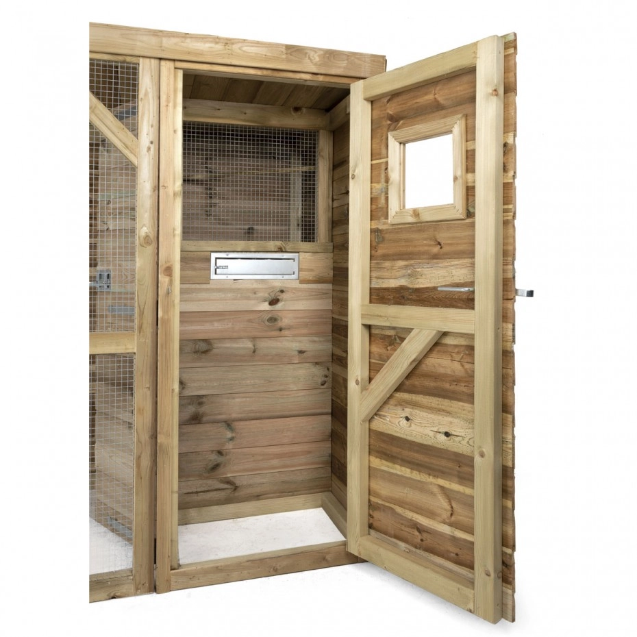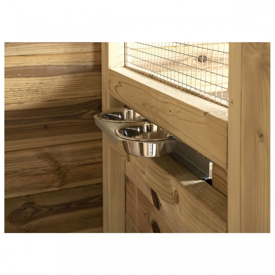 - Dierenverblijf van geïmpregneerd grenen hout, dat maakt het hok onderhoudsvrij en zorgt voor een lange levensduur