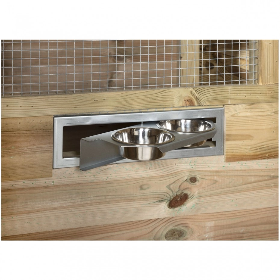 - Deze volière is voorzien van een twee-baks draaibaar voedersysteem. Hierdoor kunnen de vogels eenvoudig gevoerd worden zonder ontsnappingsgevaar