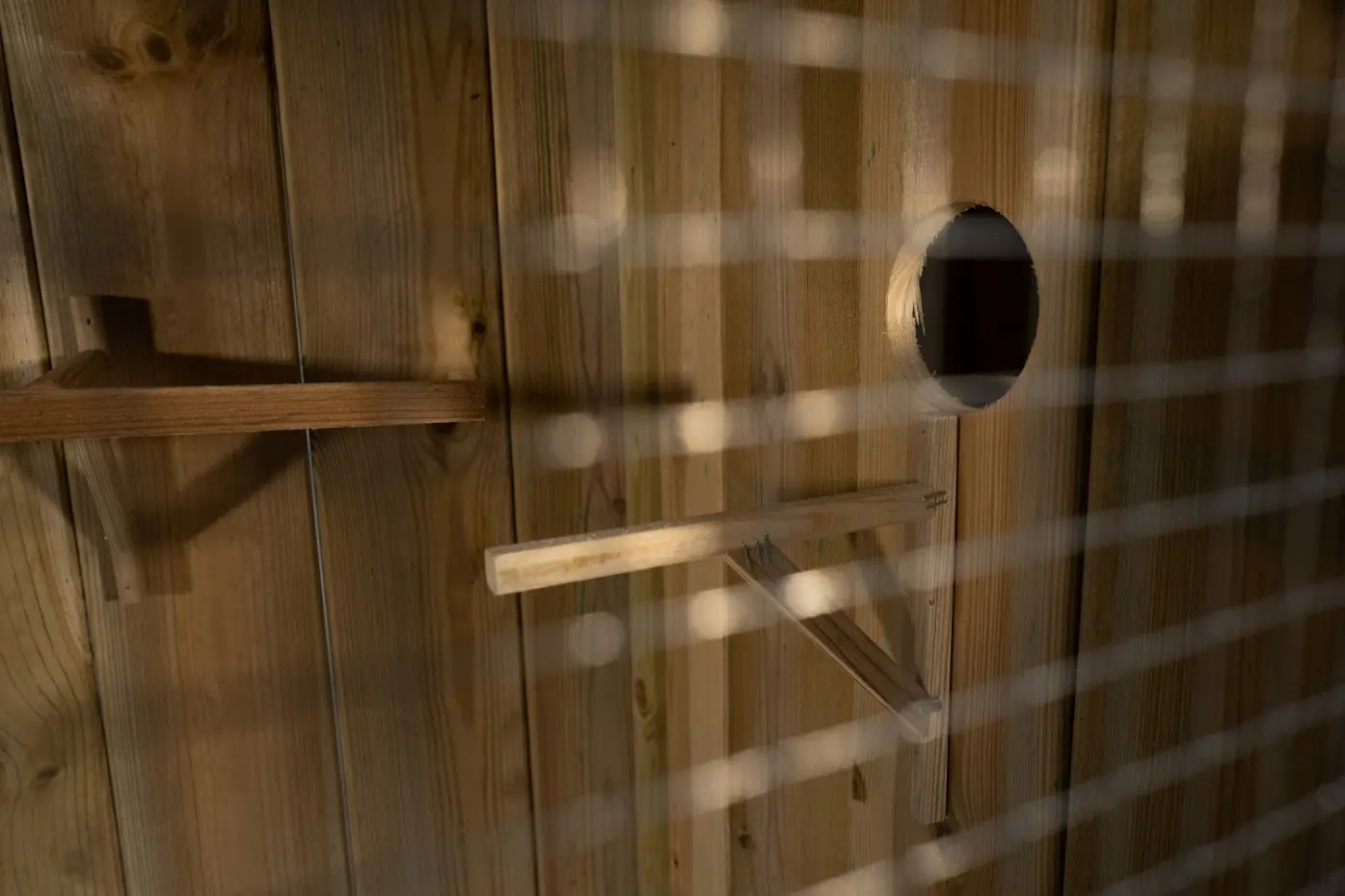 - In de vlucht van de volière zijn zitstokken aangebracht
