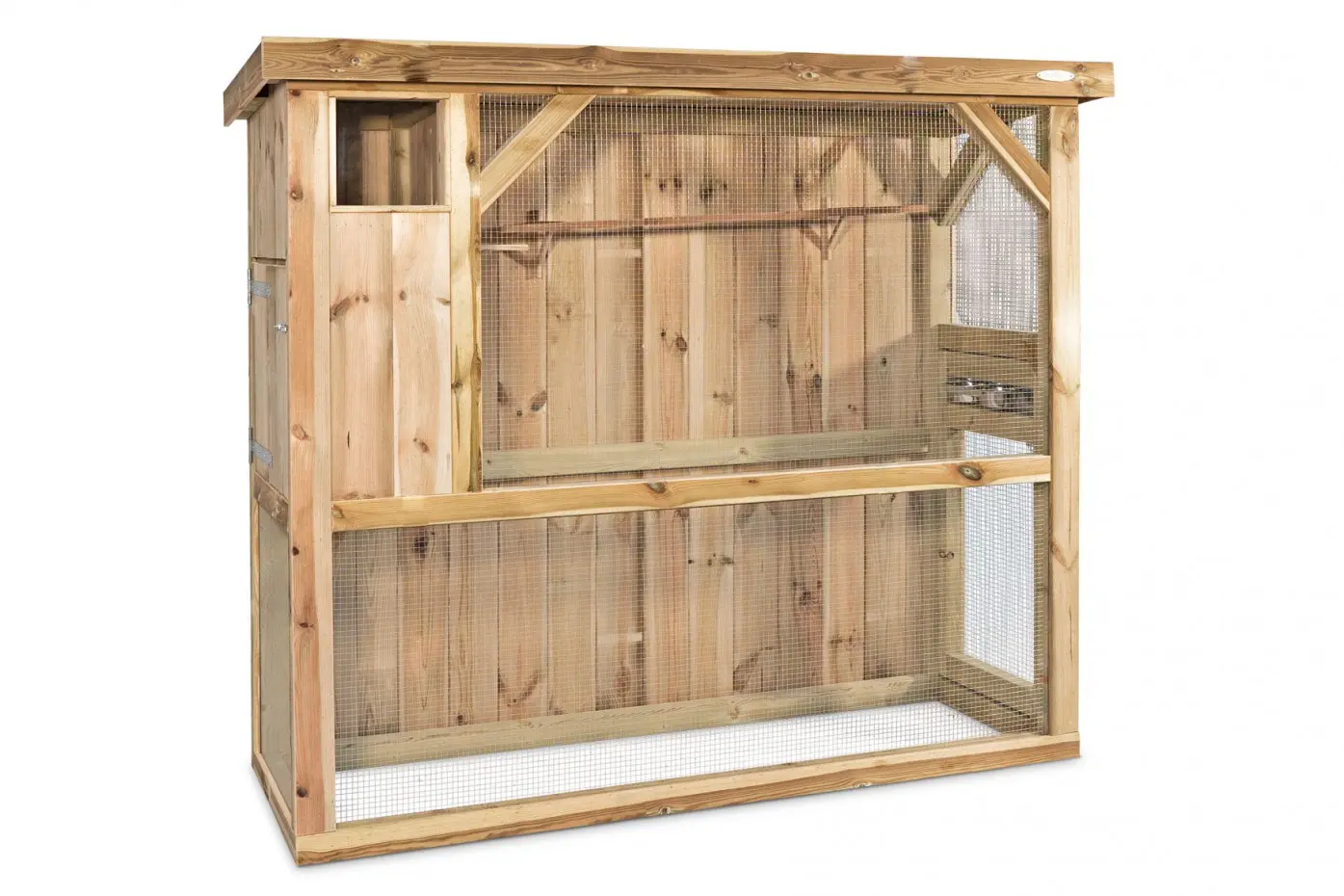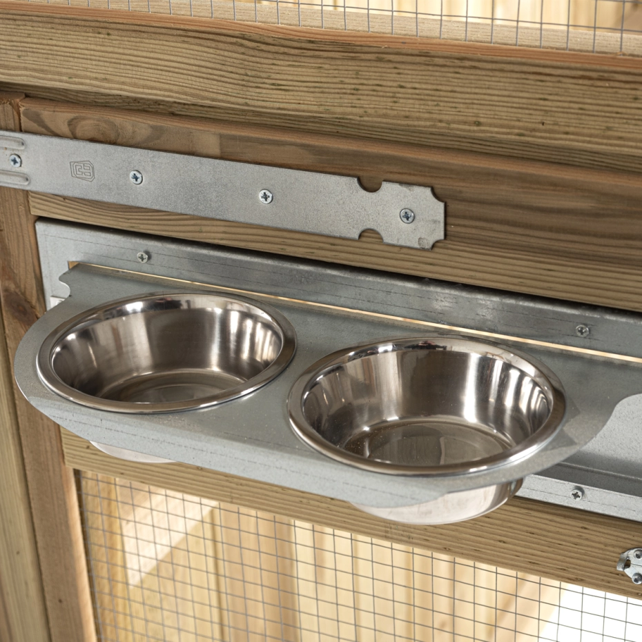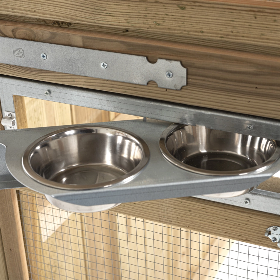 - Deze volière is voorzien van een twee-baks draaibaar voedersysteem. Hierdoor kunnen de vogels eenvoudig gevoerd worden zonder ontsnappingsgevaar