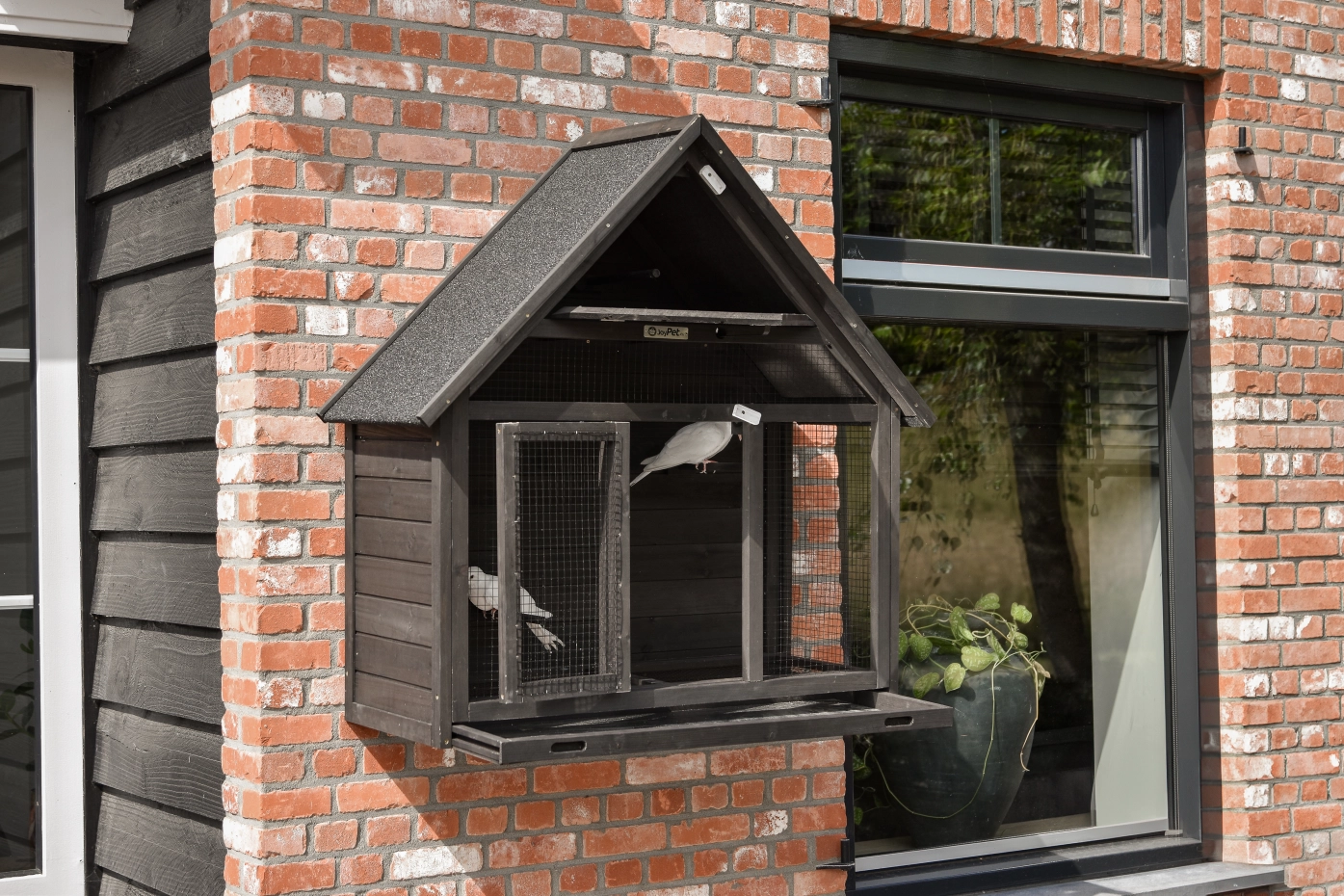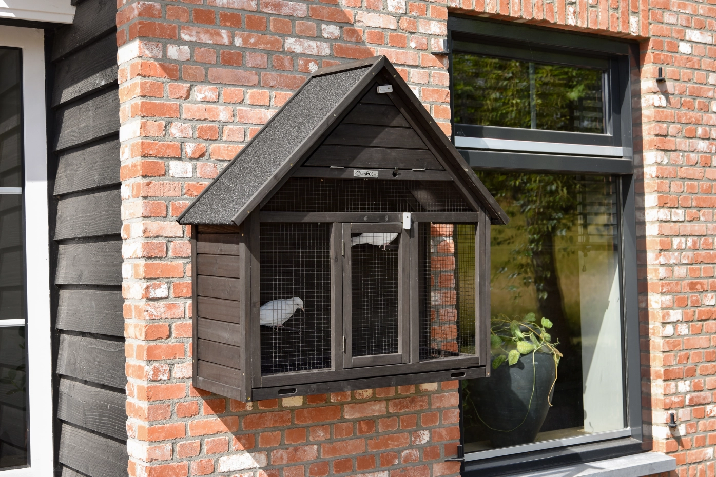 - Het nachthok van de voliere is afsluitbaar
