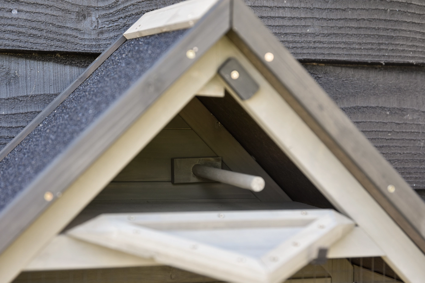 Het voor uw product gebruikte hout is een uniek natuurproduct wat in het land van herkomst, na zorgvuldige selectie, op ambachtelijke wijze is verwerkt. Het is karakteristiek en uniek in elk opzicht. Dit houtproduct heeft bovendien een handmatige bewerking ondergaan. Geen enkel stuk hout is gelijk van vorm, structuur of kleur, zodat kleurschakeringen zelfs binnen één stuk hout onvermijdelijk zijn. Windbarsten, haarscheuren, oneffenheden en de aanwezigheid van grote en kleine noesten getuigen van hun oorsprong en jarenlange groei. Oneffenheden zijn meestal handmatig bijgewerkt met houtvulling. Door gebruik en door invloed van licht zullen nieuwe dierenverblijven na verloop van tijd een warmere kleur krijgen. Kleurverschillen onderling en ten opzichte van het showmodel zijn daarom voor de hand liggend. Het product is voorzien van een beitsafwerking in de kleuren zoals op de foto. U dient het hout nogmaals te beitsen om schimmelvorming en rotting te voorkomen. Beits kunt u direct handig meebestellen.